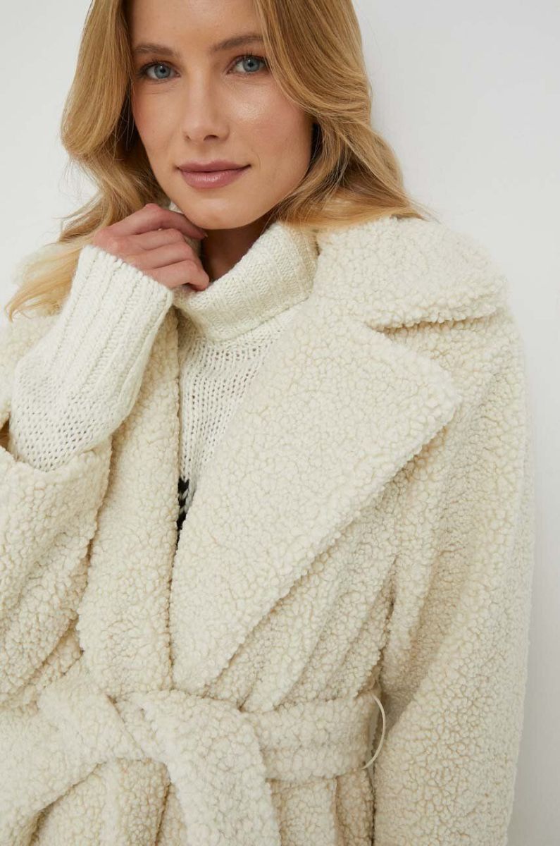 Пальто Sisley жіночий колір бежевий перехідний oversize