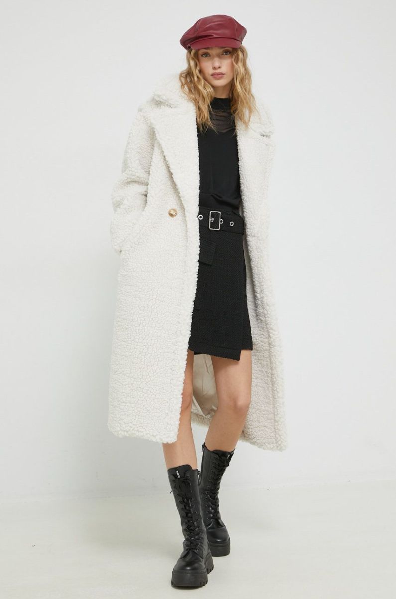 Пальто UGG жіночий колір бежевий перехідний двобортний