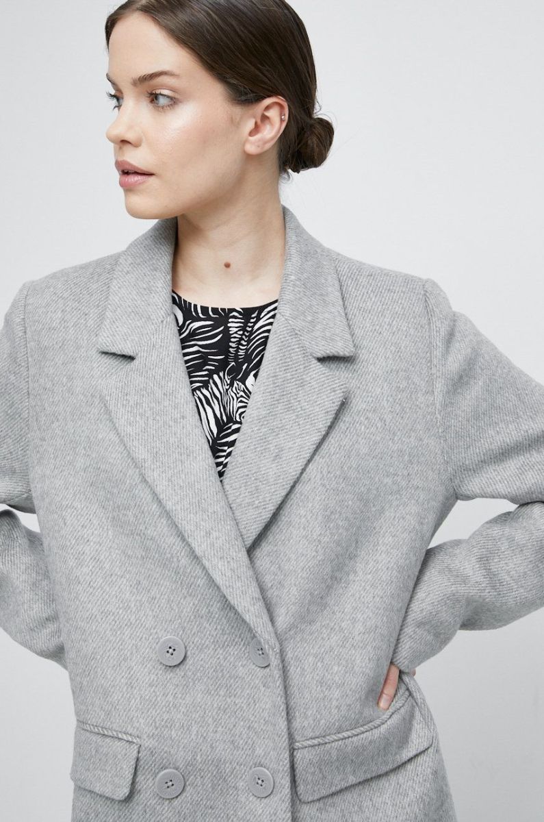 Пальто з домішкою вовни Medicine колір сірий перехідне двобортне