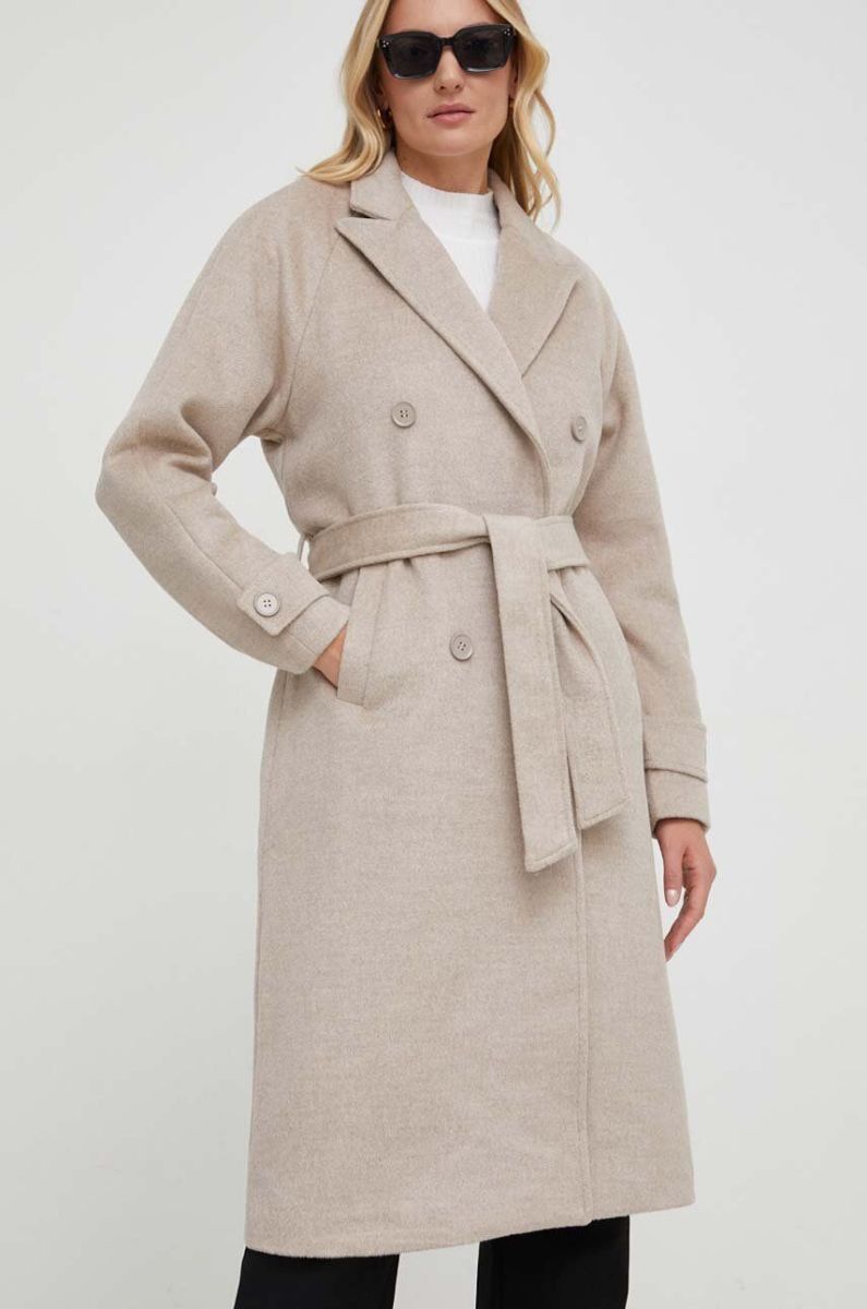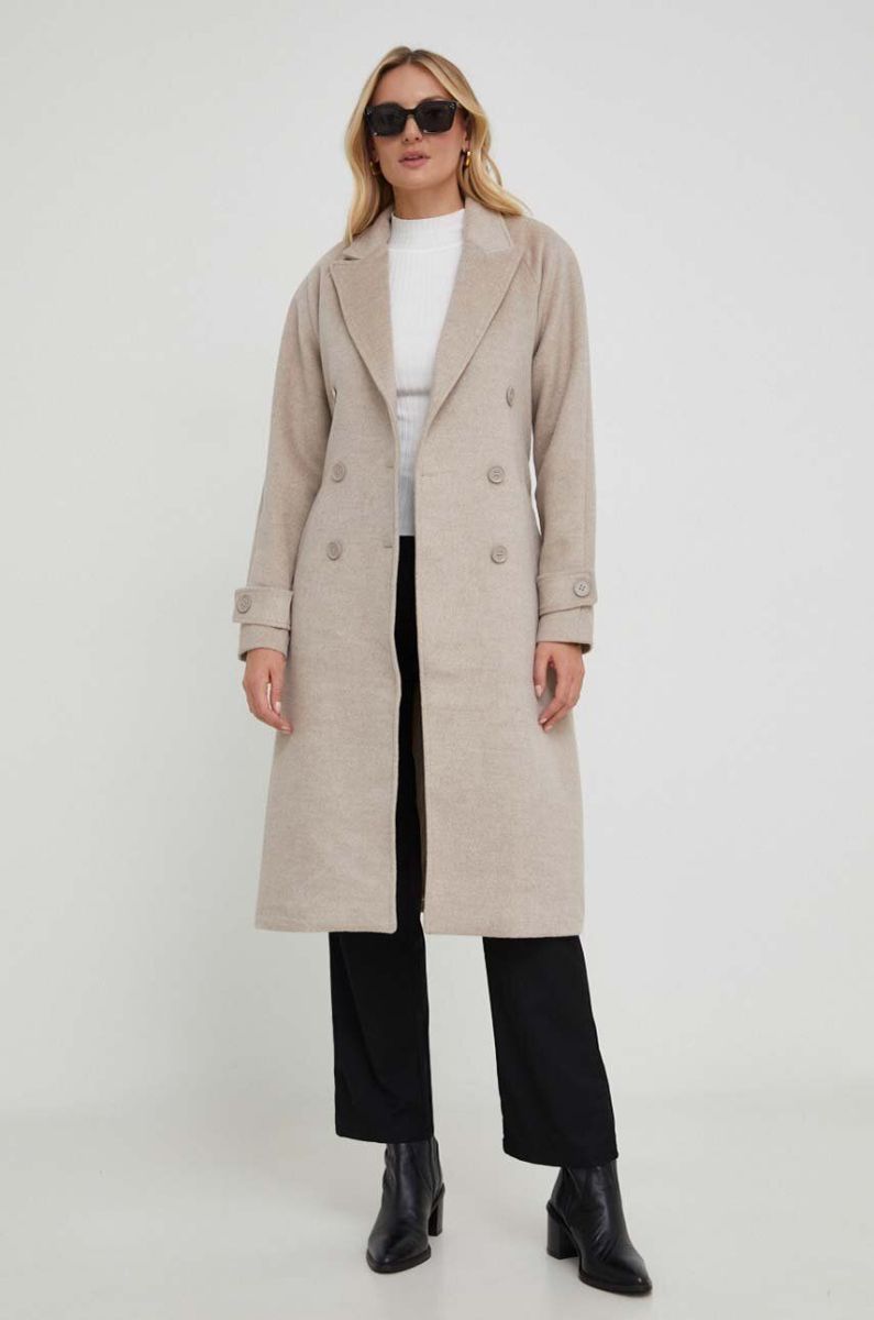 Пальто з вовною Answear Lab колір бежевий перехідний двобортний (3569069)