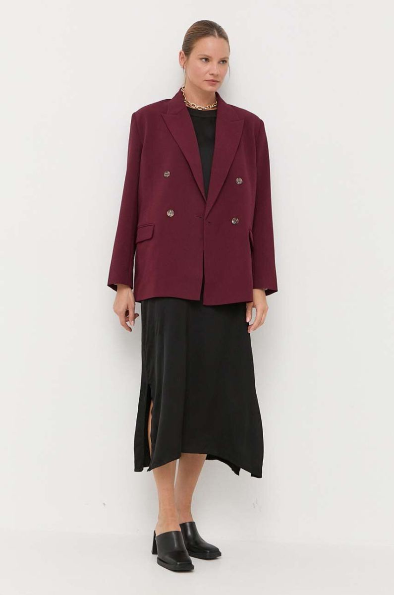 Піджак 2NDDAY колір бордовий двобортний однотонна