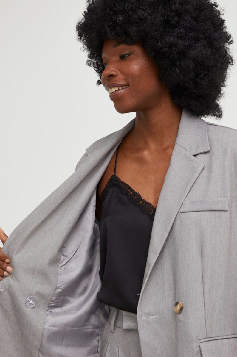 Піджак Answear Lab жіноча колір сірий двобортний однотонний