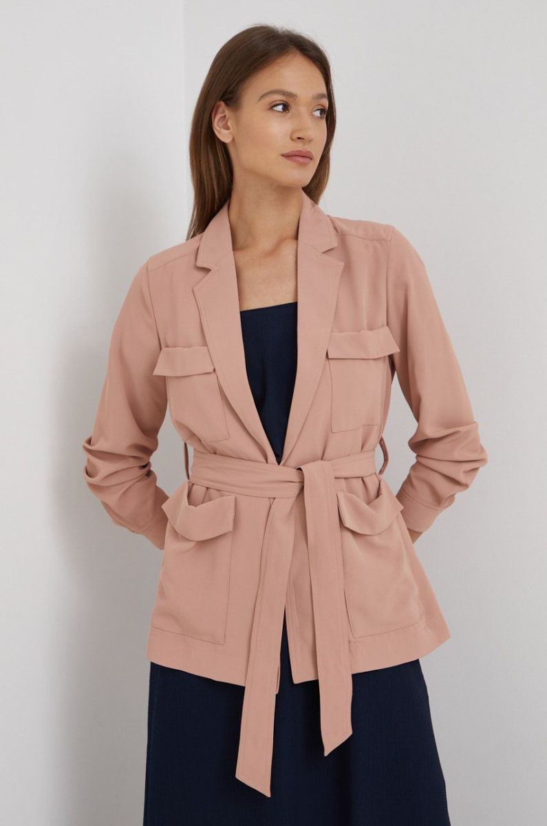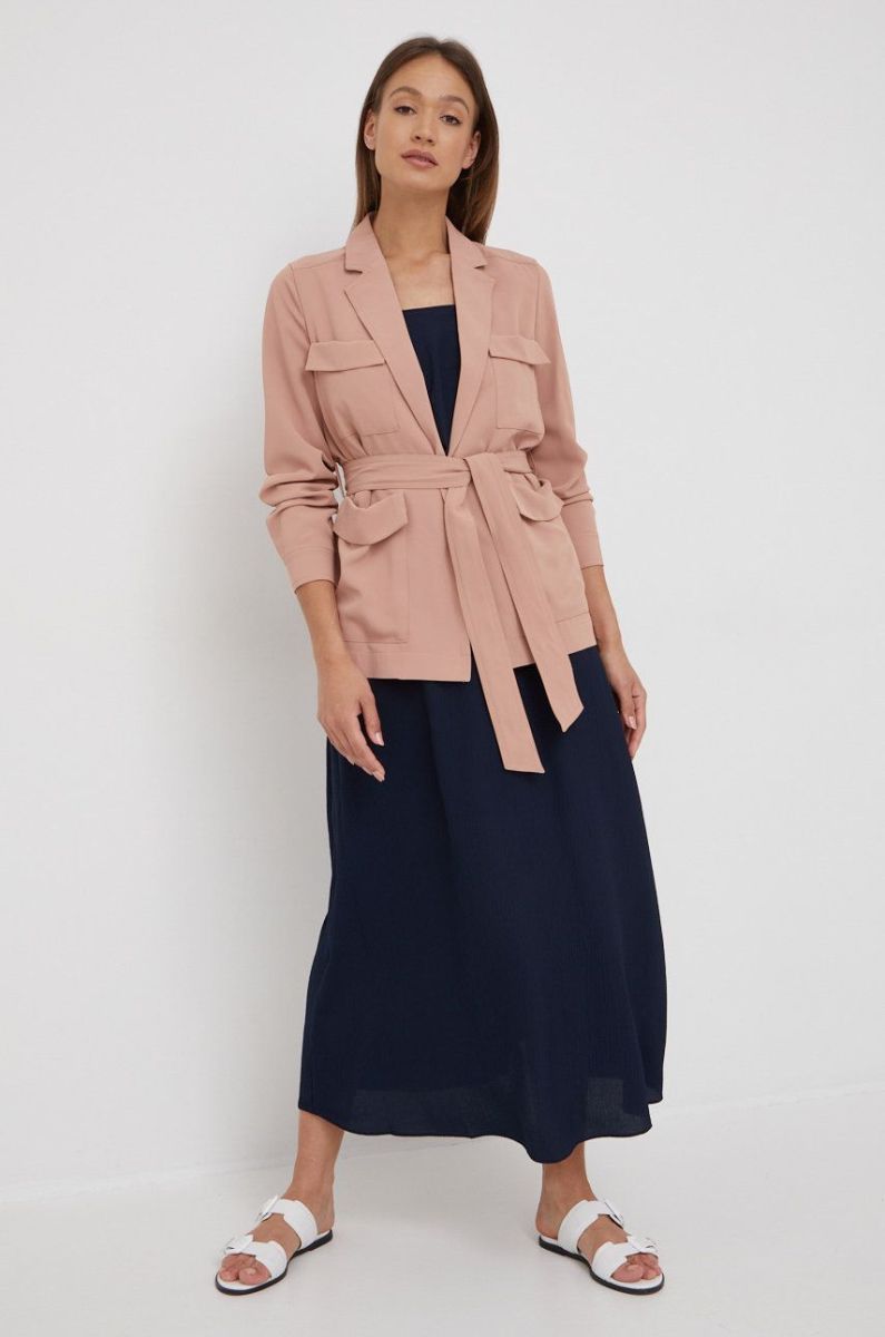 Піджак Dkny колір рожевий без застібки однотонна