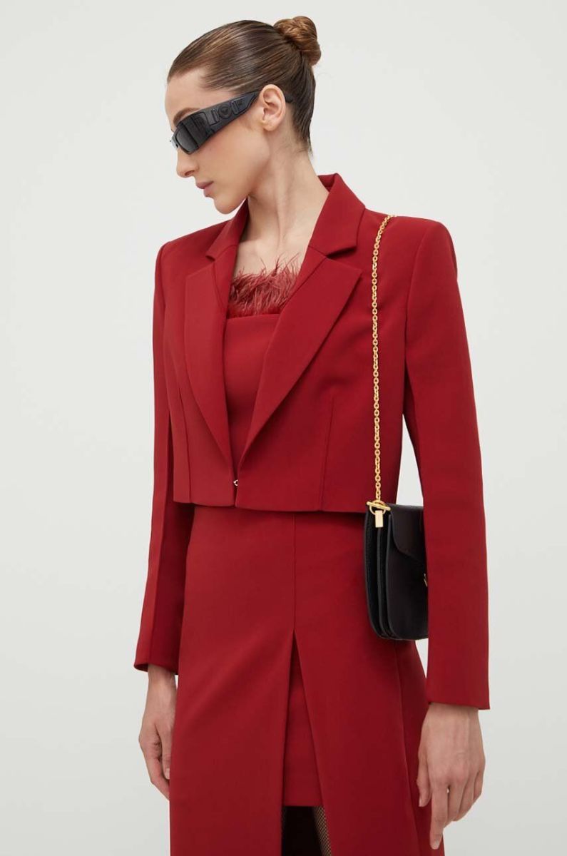 Піджак Patrizia Pepe колір бордовий однобортний однотонна