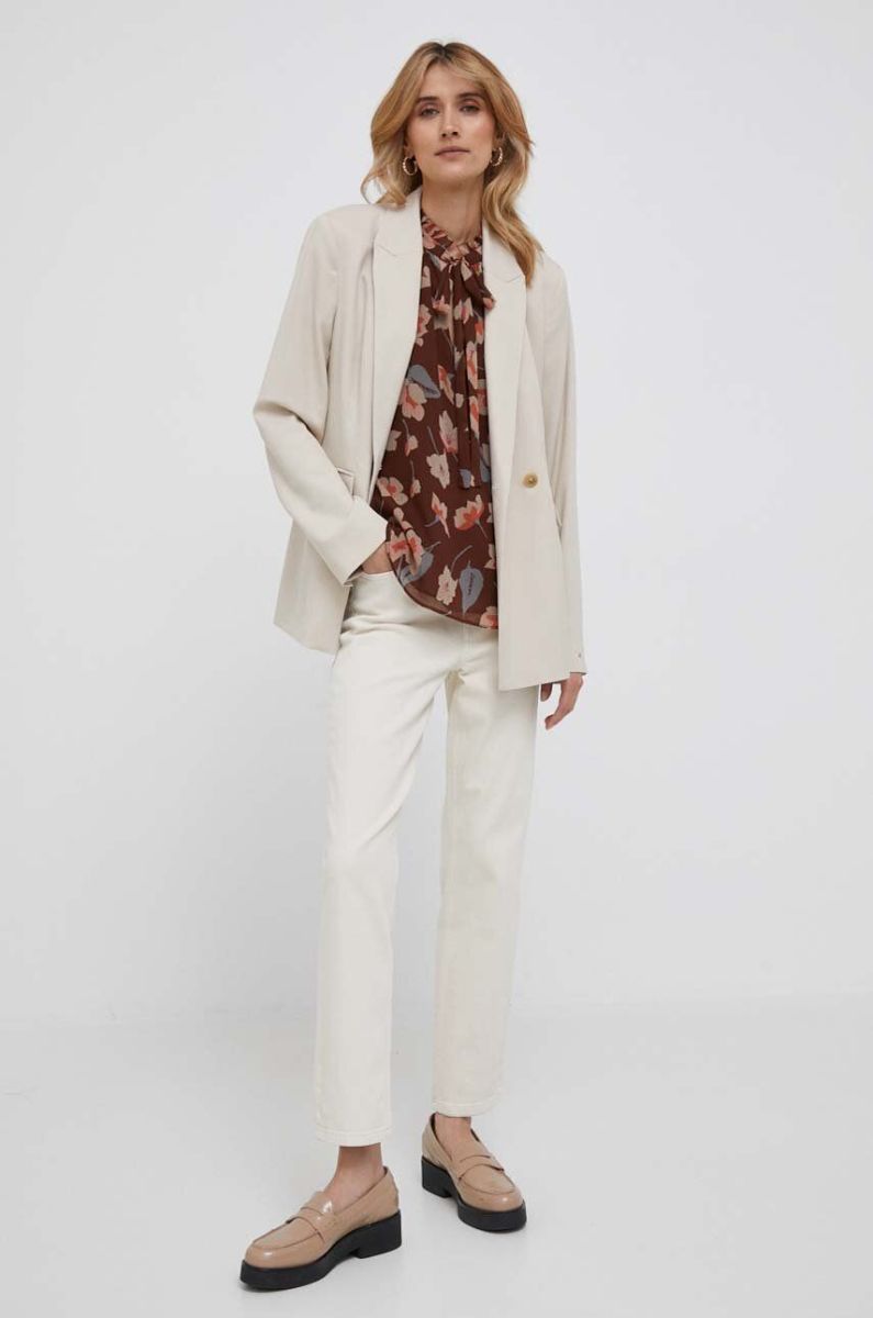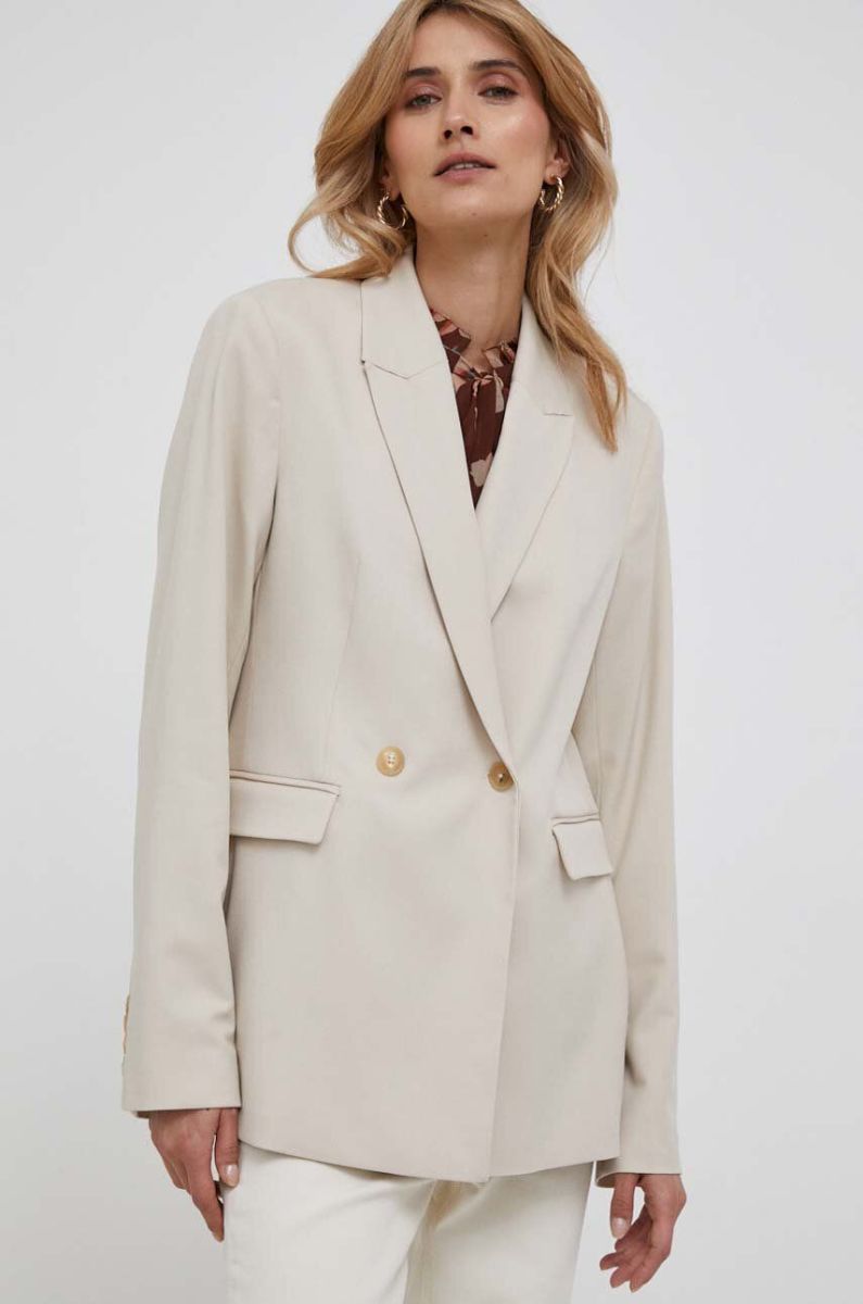 Піджак Tommy Hilfiger колір бежевий двобортний однотонна