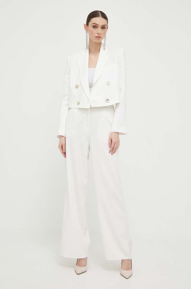 Піджак з домішкою льону Pinko колір бежевий двобортний однотонна