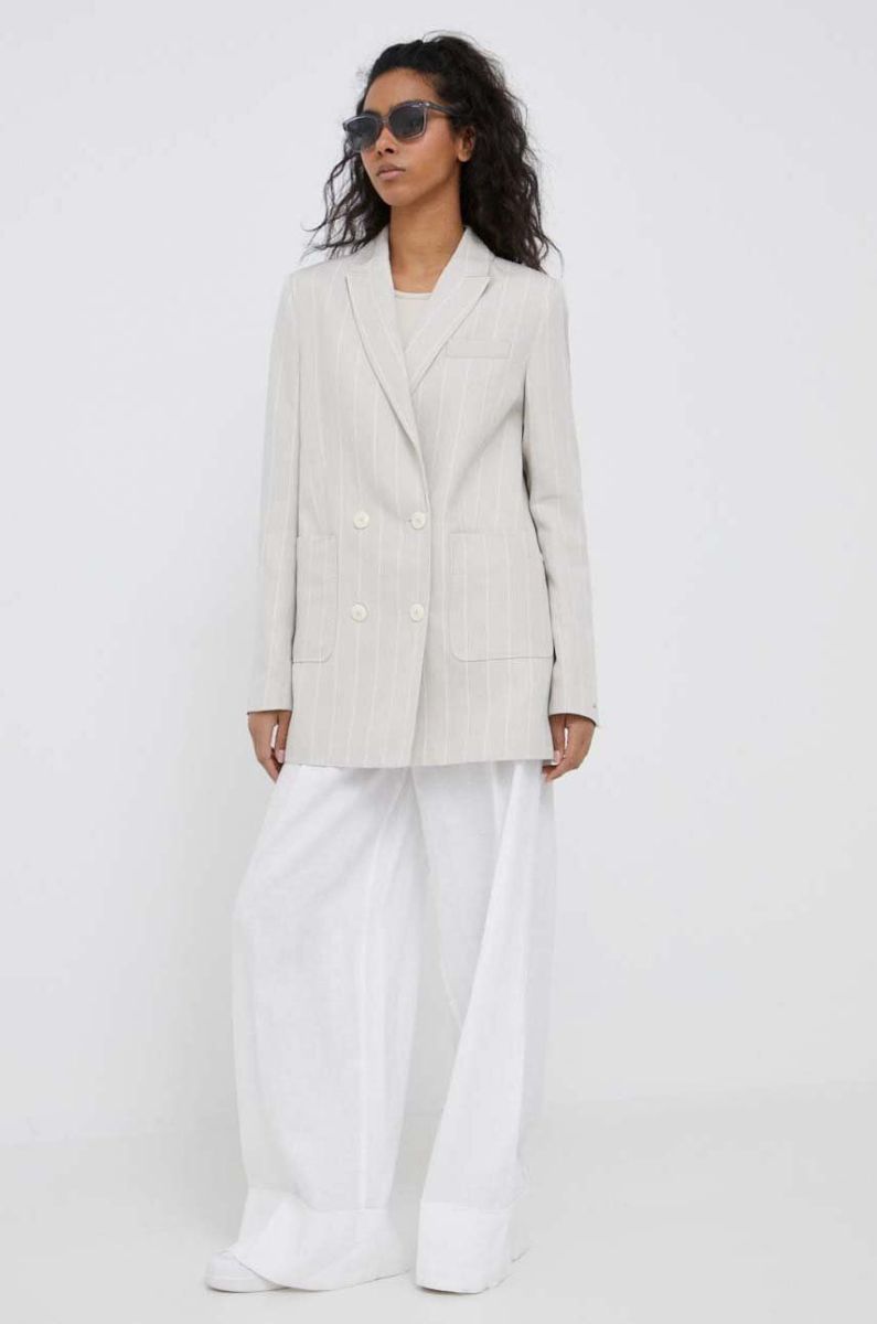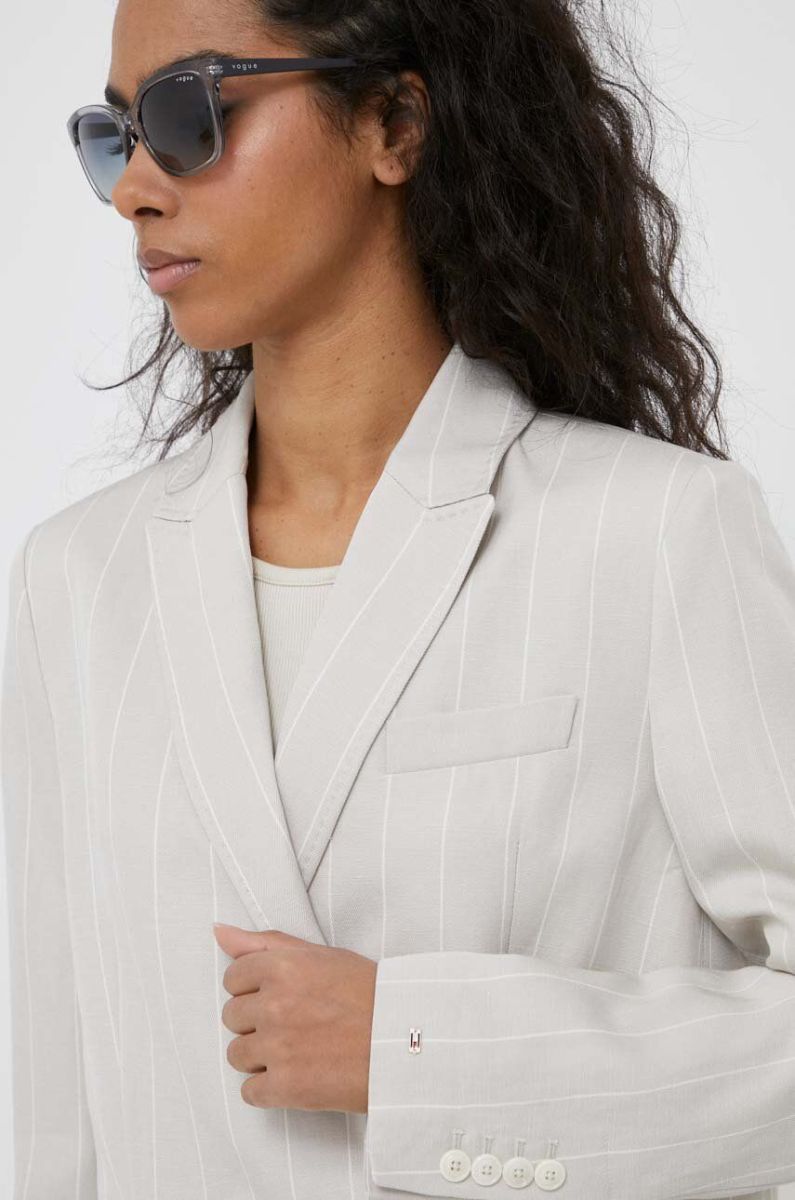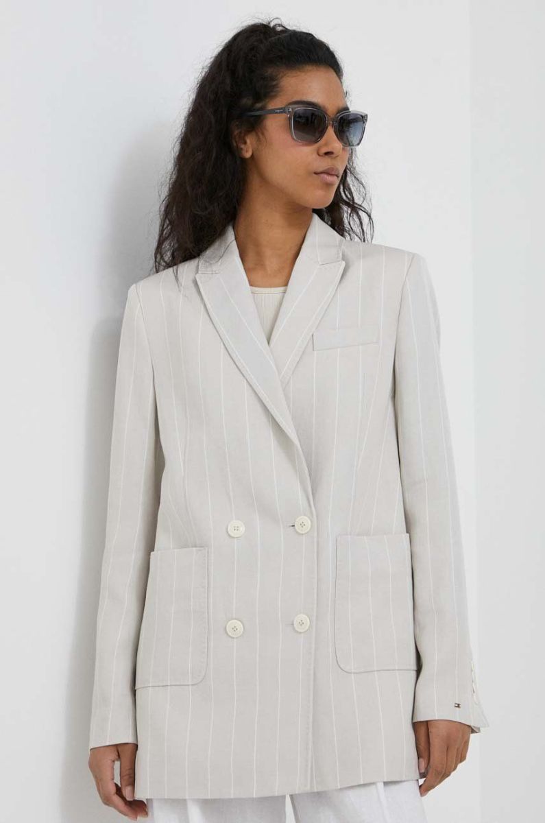 Піджак з домішкою льону Tommy Hilfiger колір бежевий двобортний візерунок 34
