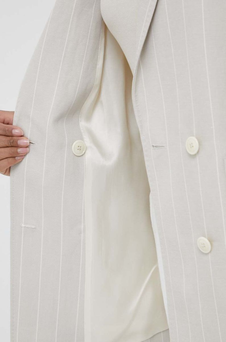 Піджак з домішкою льону Tommy Hilfiger колір бежевий двобортний візерунок