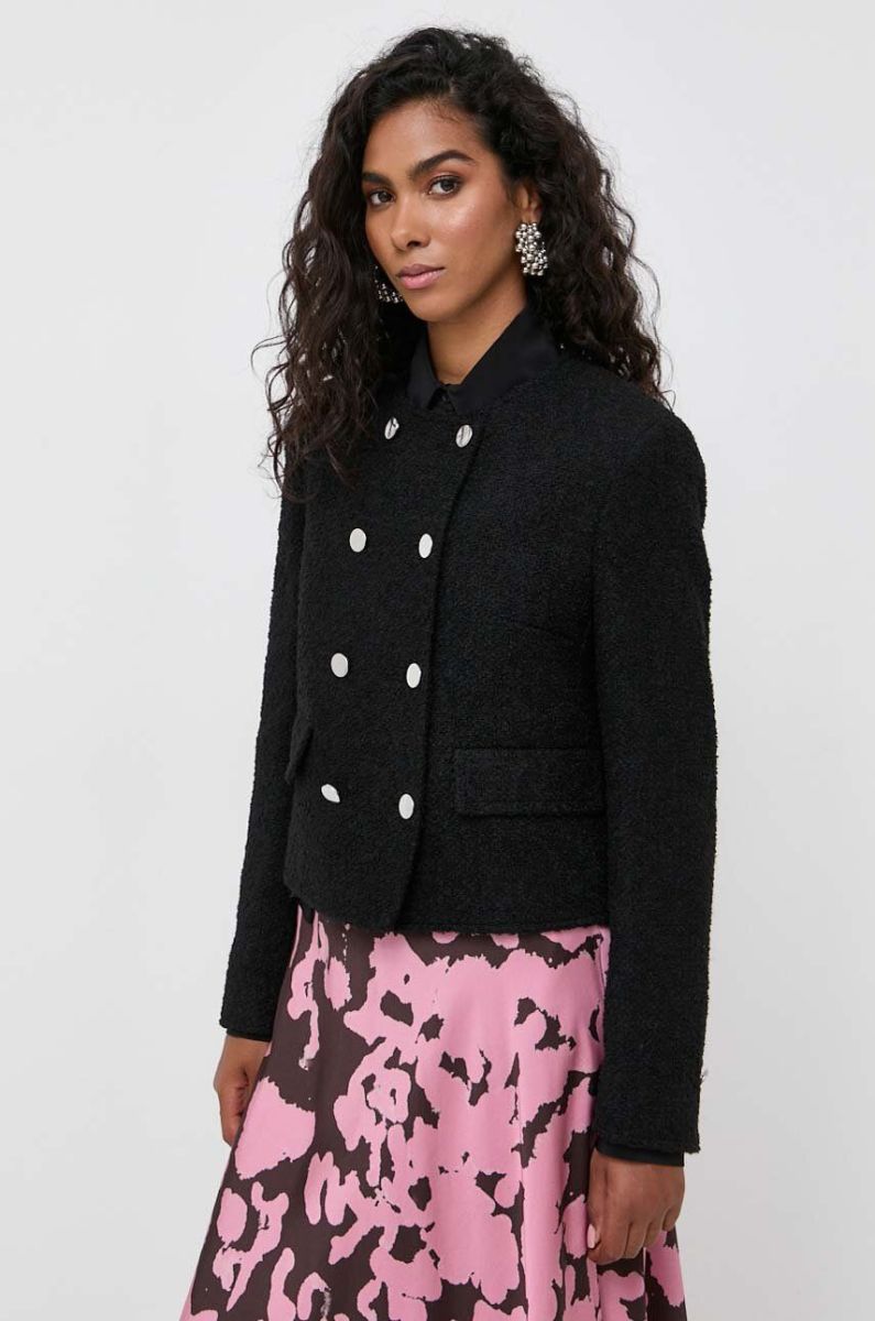Піджак з домішкою вовни BOSS колір чорний двобортний однотонна