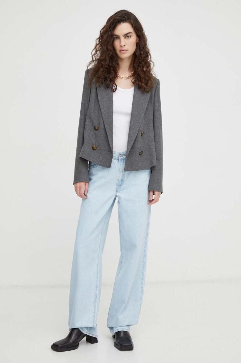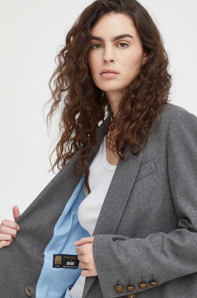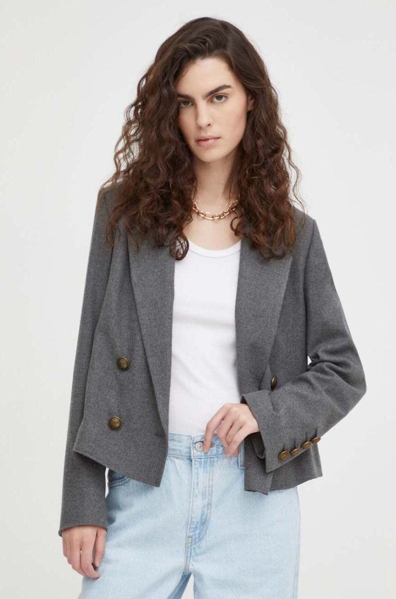 Піджак з домішкою вовни Drykorn колір сірий однобортний меланж