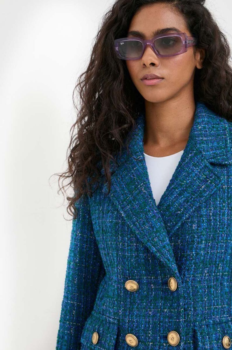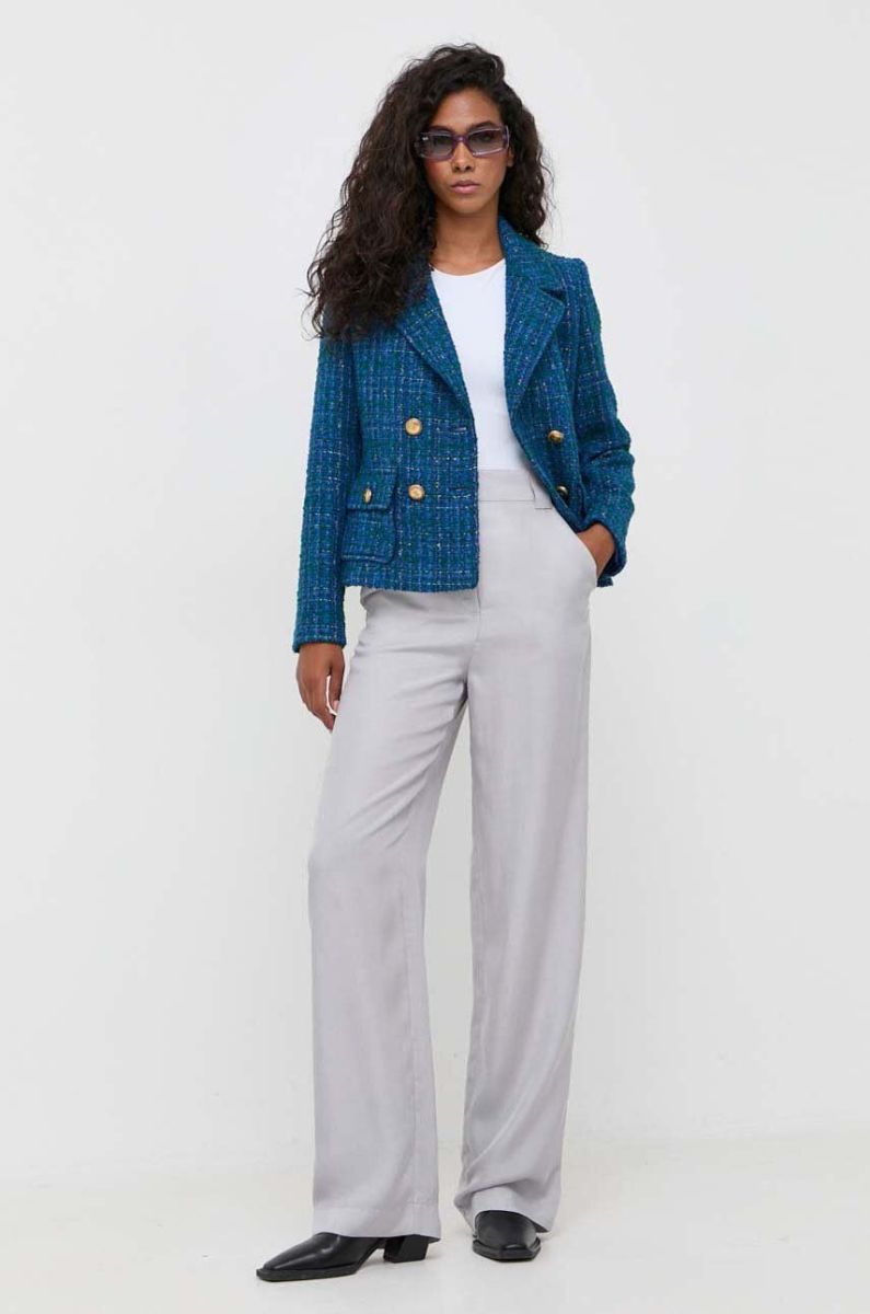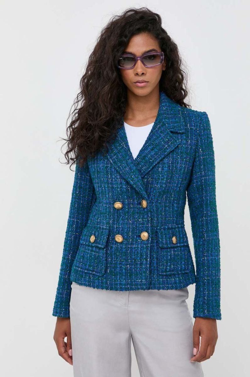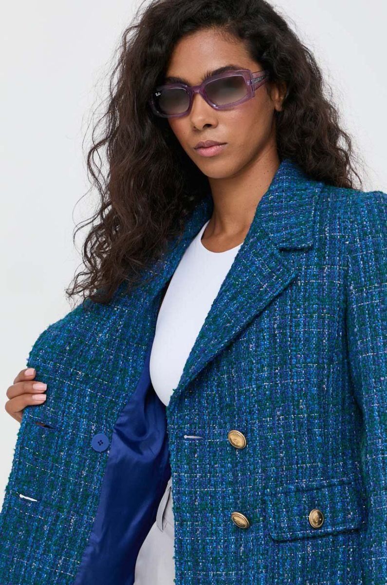 Піджак з домішкою вовни Luisa Spagnoli двобортний візерунок колір блакитний