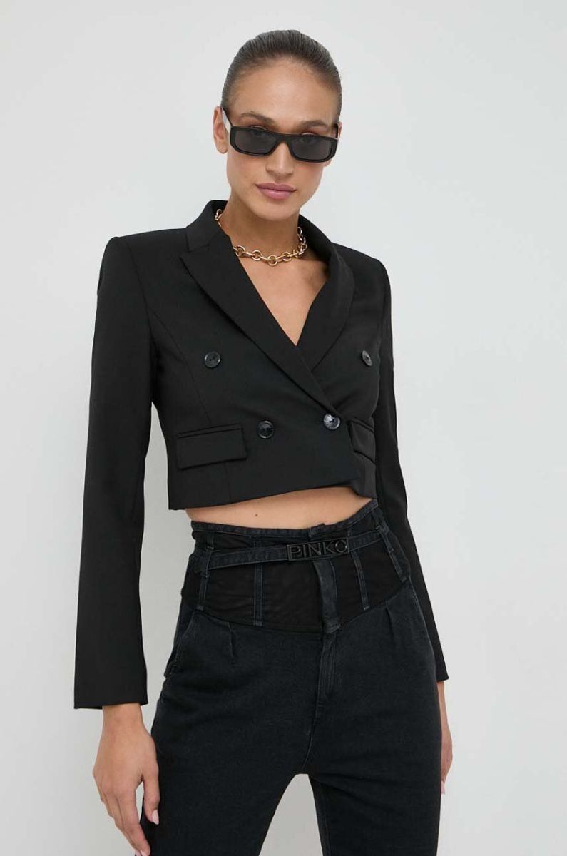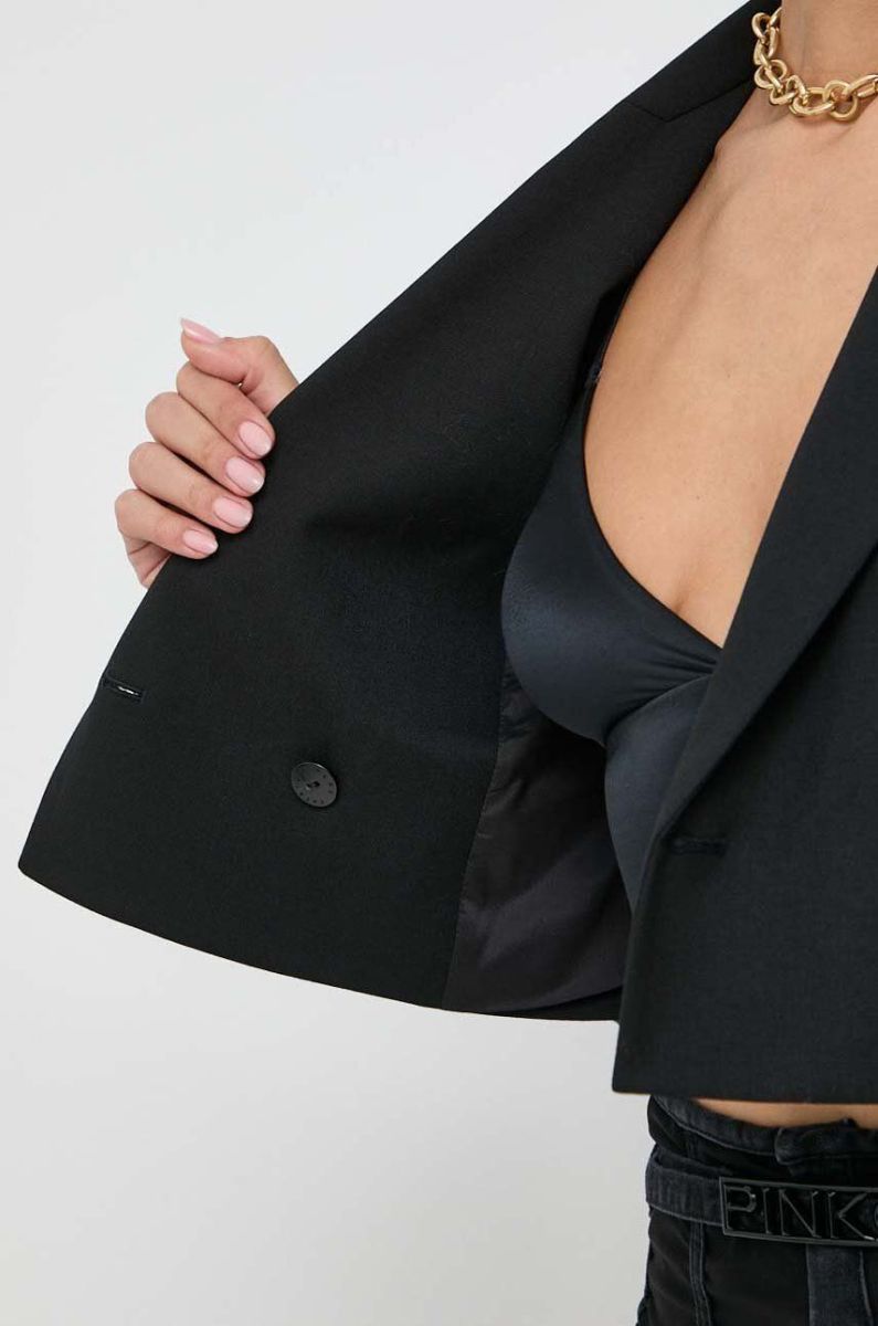 Піджак з домішкою вовни Patrizia Pepe колір чорний двобортний однотонна