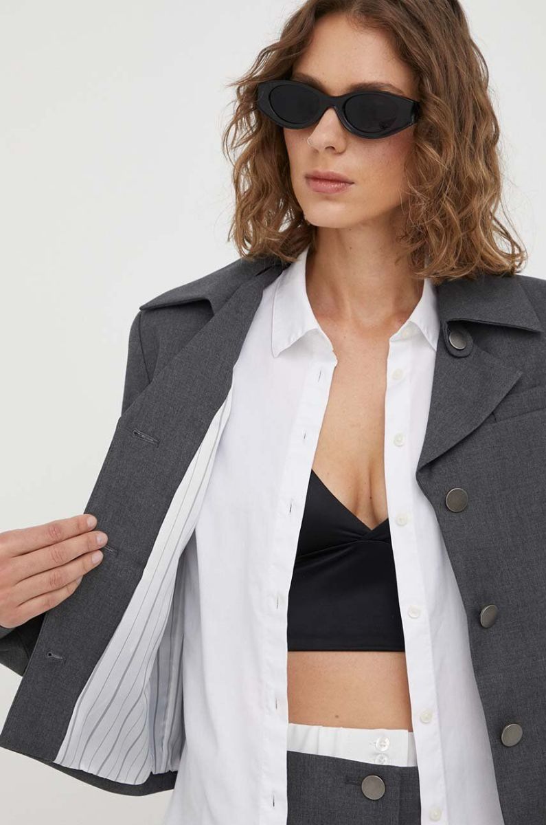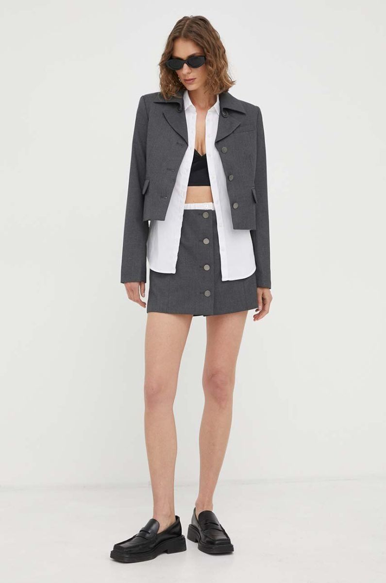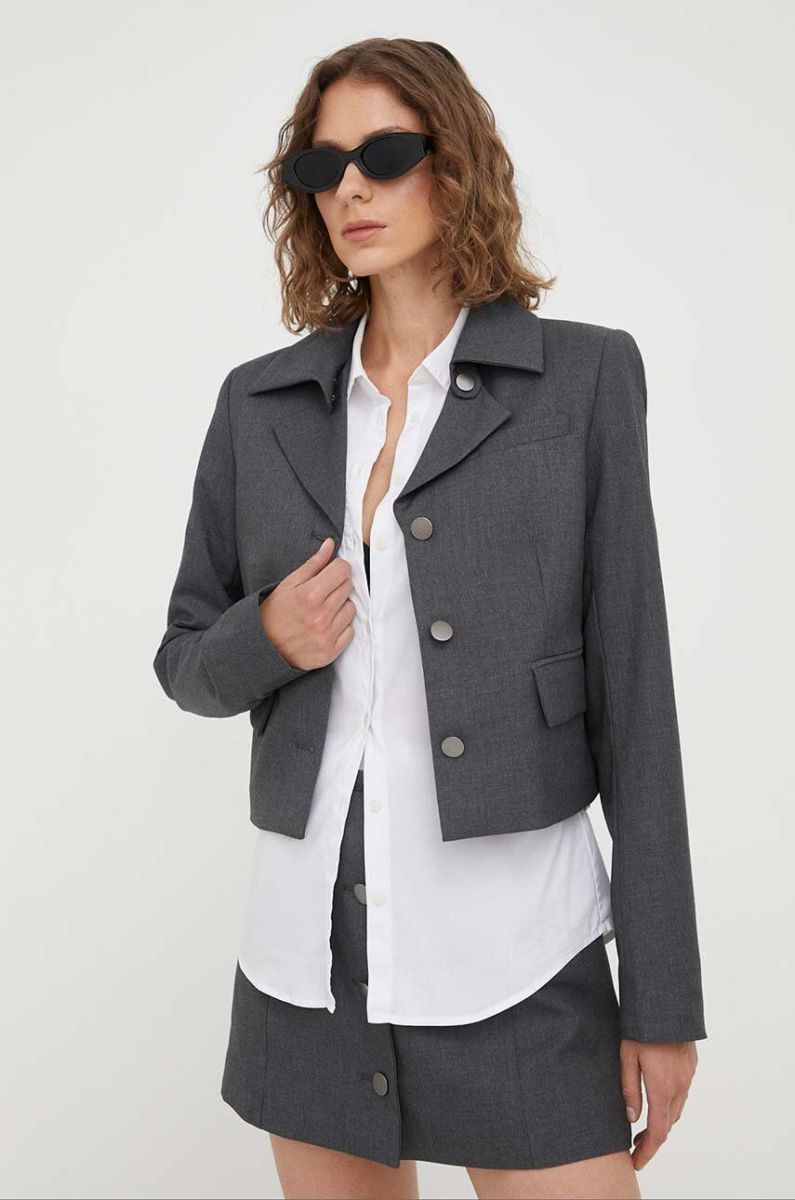 Піджак з домішкою вовни Remain колір сірий однобортний меланж