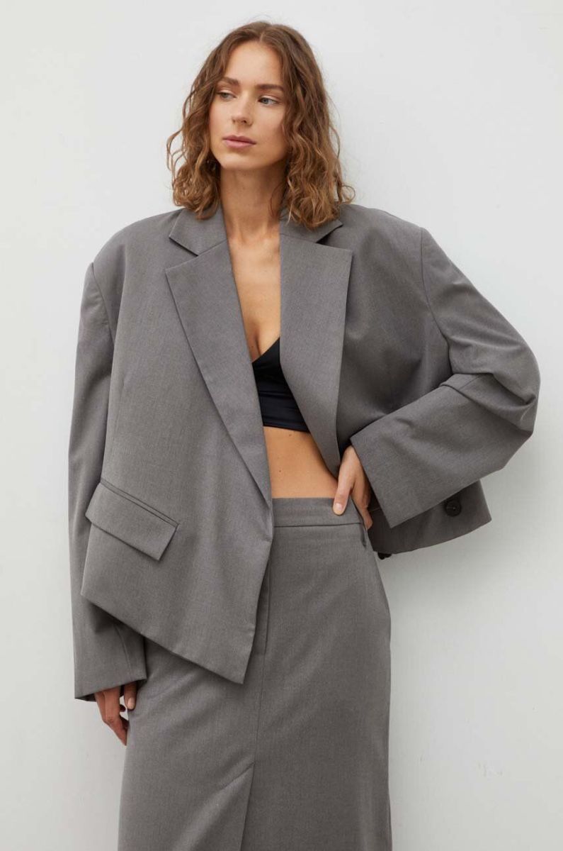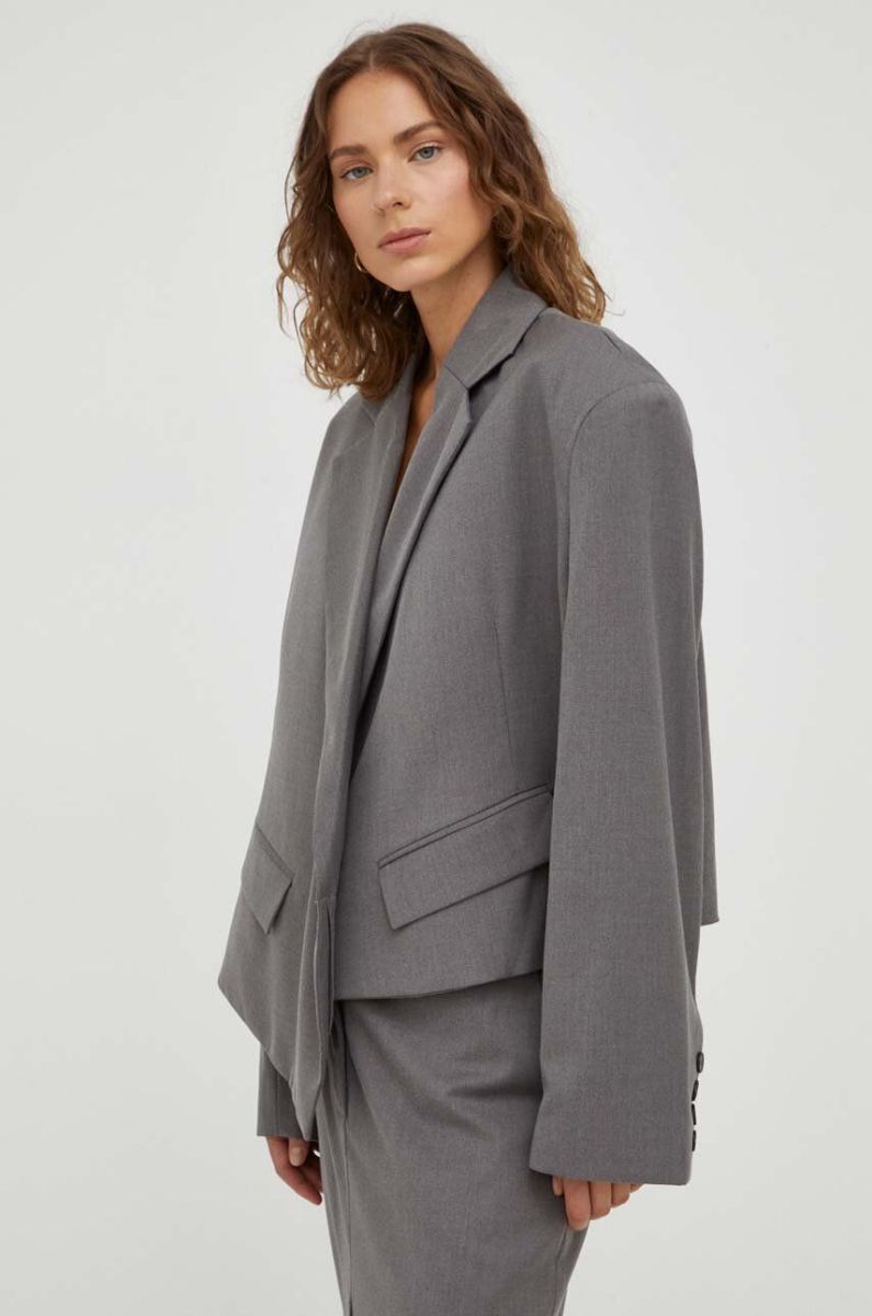 Піджак з домішкою вовни Remain колір сірий oversize однотонна