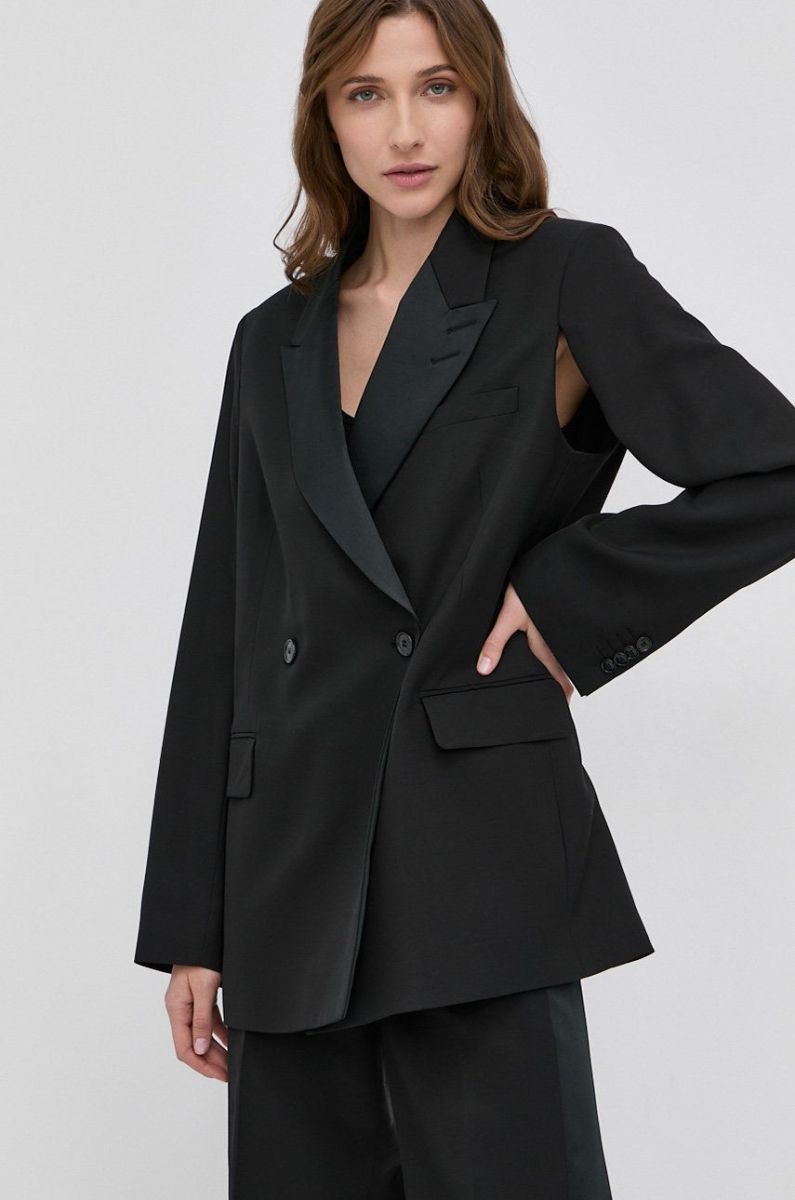 Піджак з домішкою вовни Tiger Of Sweden колір чорний двобортний гладкий