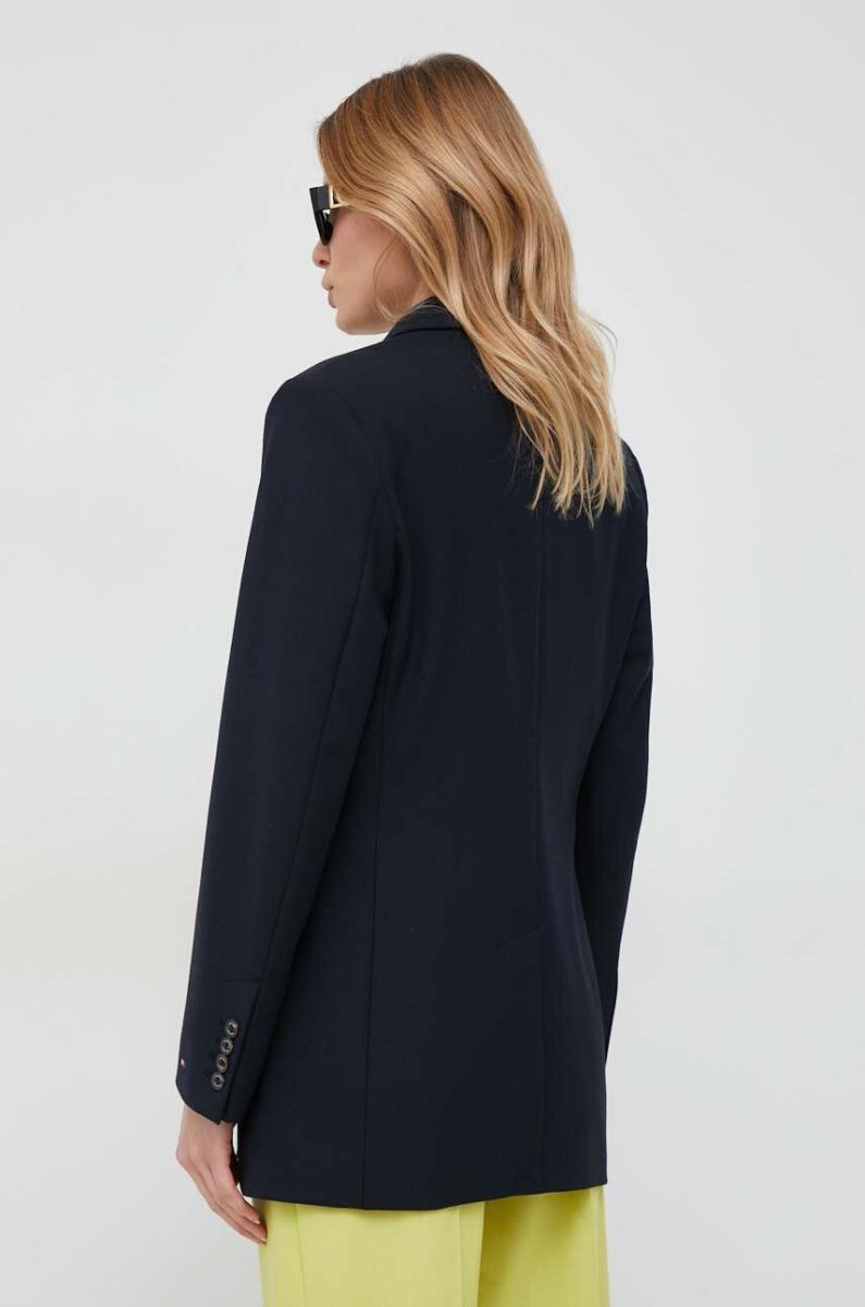 Піджак з домішкою вовни Tommy Hilfiger колір чорний двобортний однотонна