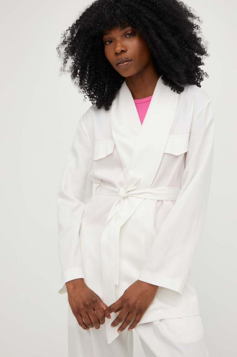 Піджак з льоном Answear Lab колір бежевий без застібки однотонний (3137729)