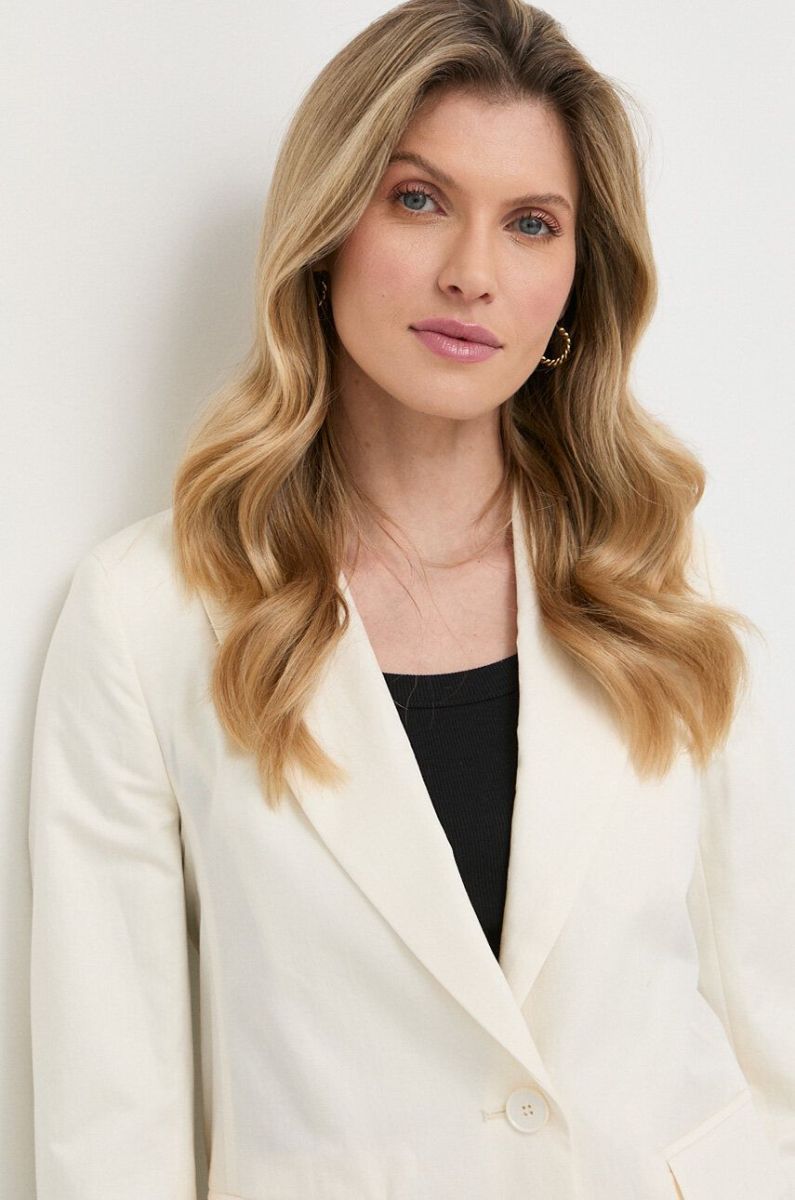Піджак з льоном Weekend Max Mara колір бежевий однобортний однотонна