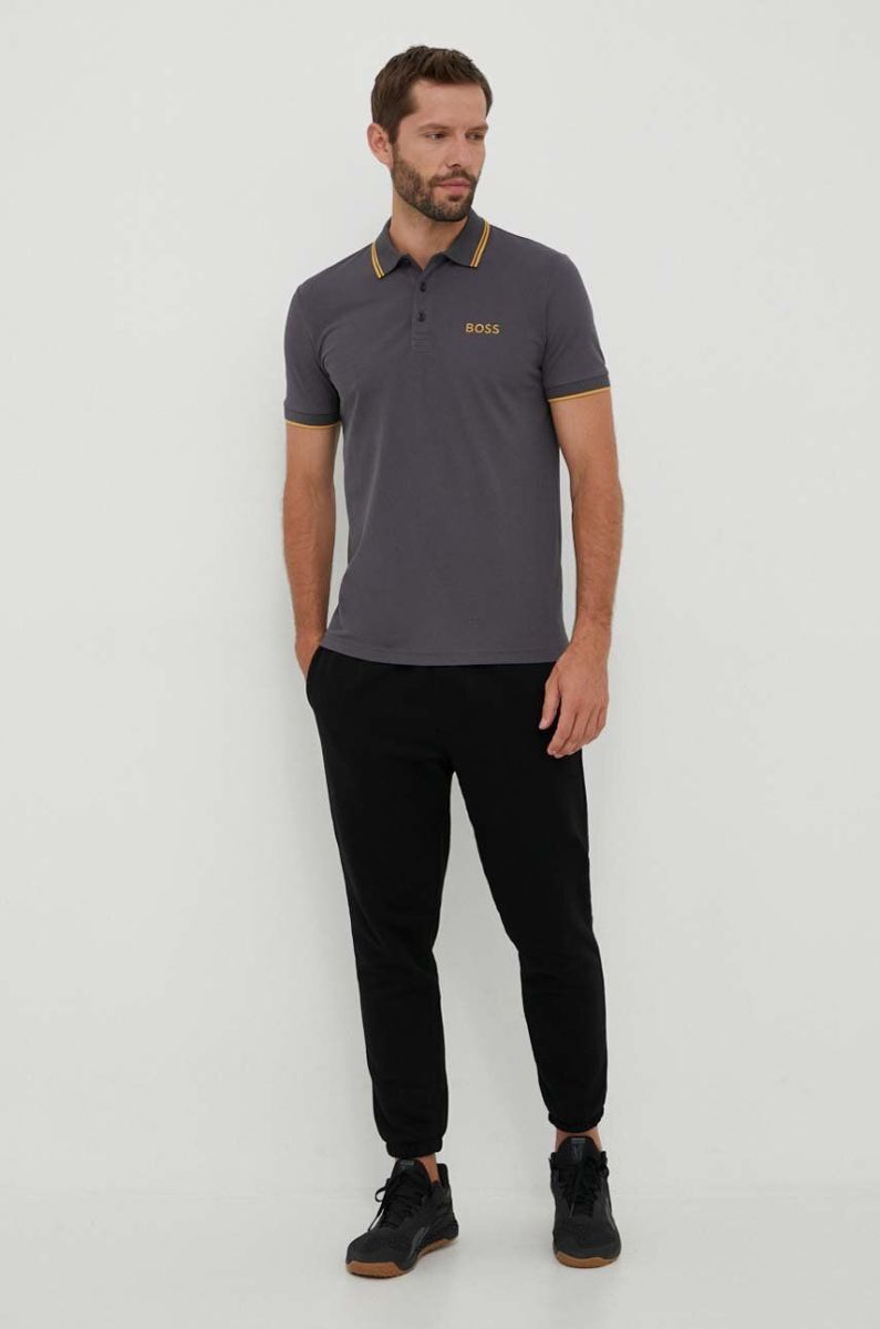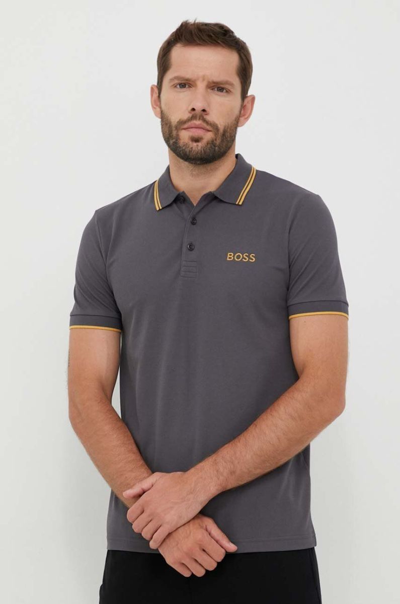 Поло Boss Green BOSS GREEN чоловіче колір сірий з аплікацією