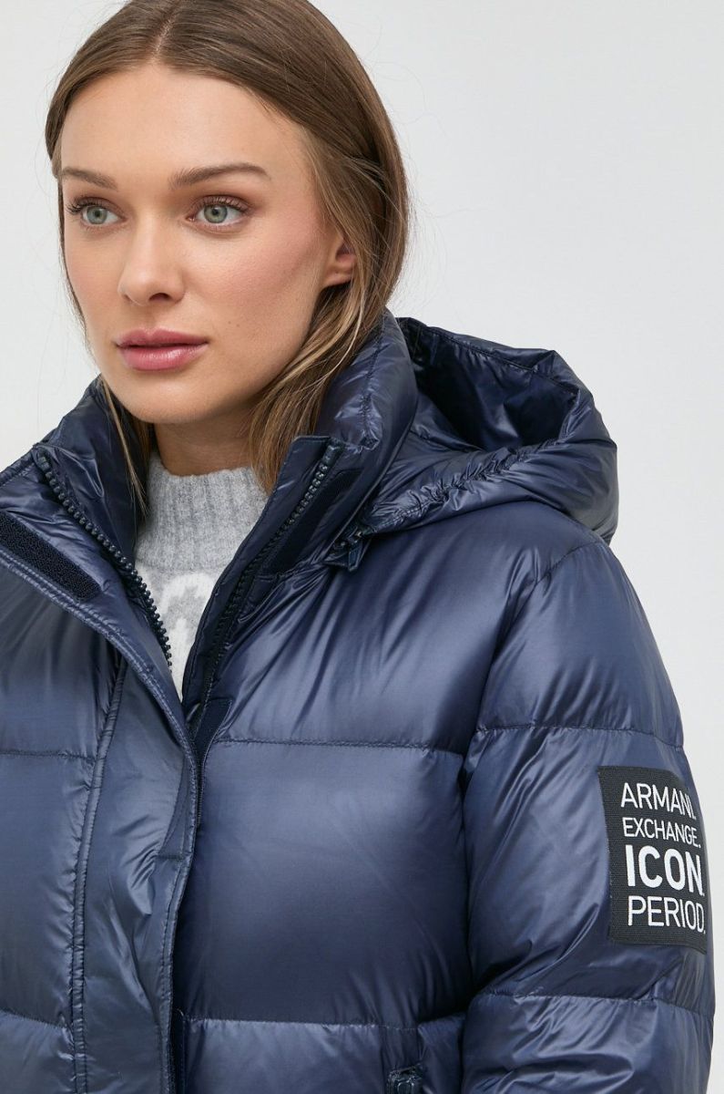 Пухова куртка Armani Exchange жіноча колір синій зимова (2660801)