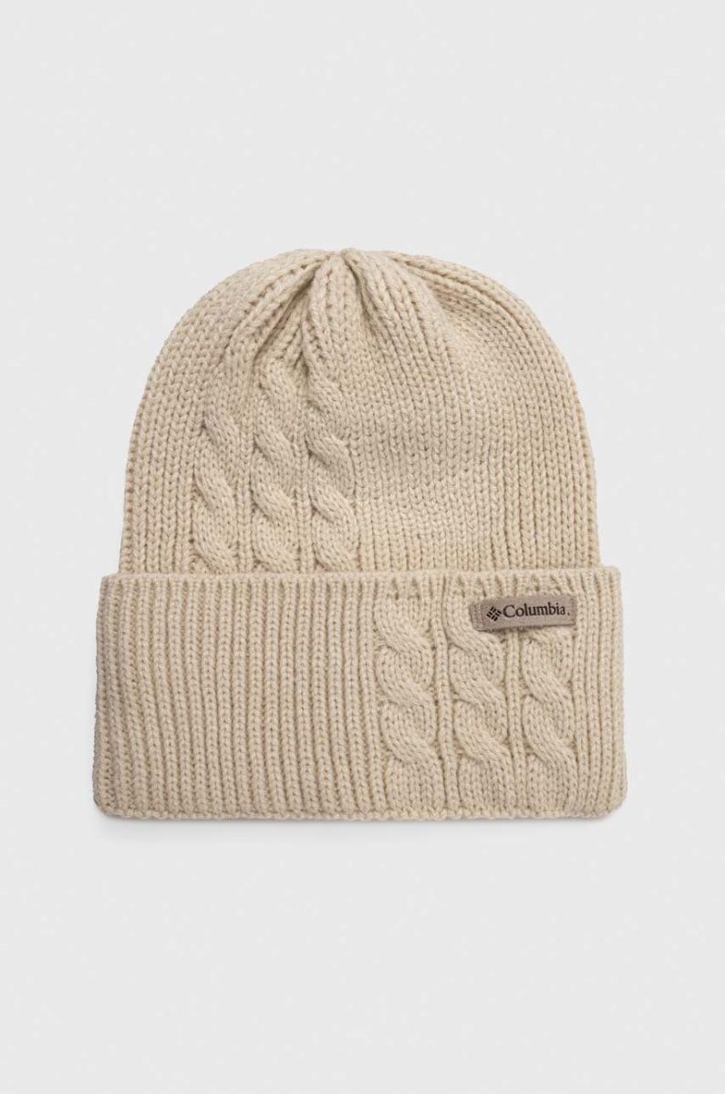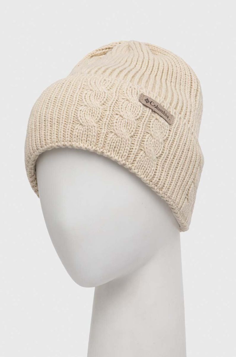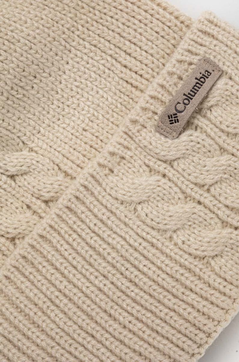 Шапка Columbia колір бежевий з товстого трикотажу (3492562)