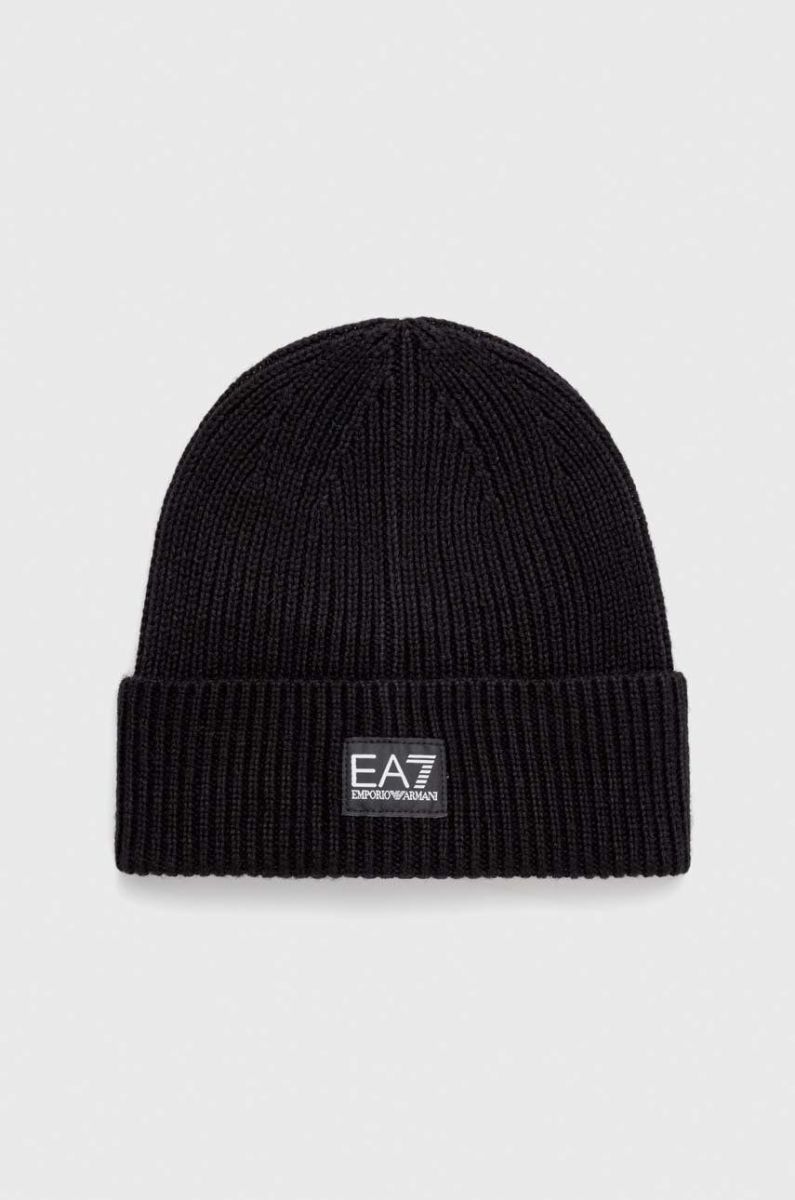 Шапка з домішкою вовни EA7 Emporio Armani колір чорний з товстого трикотажу (3629446) M