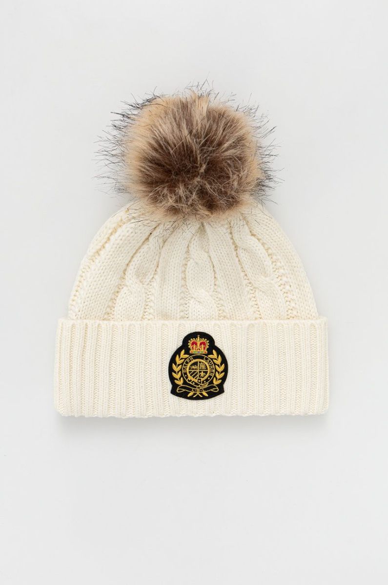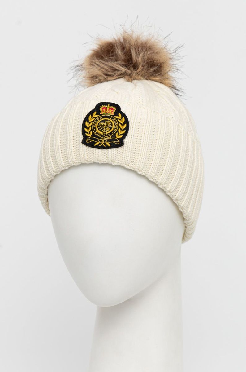 Шапка з домішкою вовни Lauren Ralph Lauren колір бежевий з товстого трикотажу Один розмір