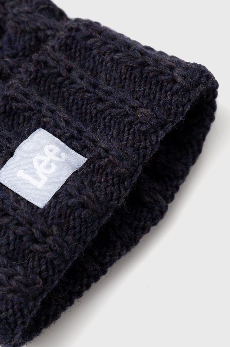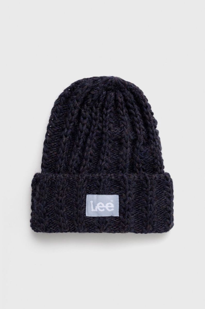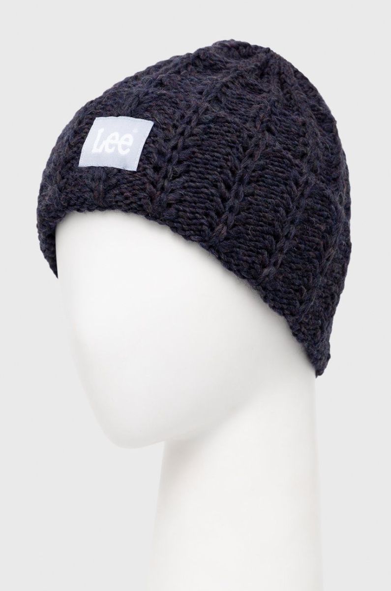 Шапка з домішкою вовни Lee колір синій з товстого трикотажу
