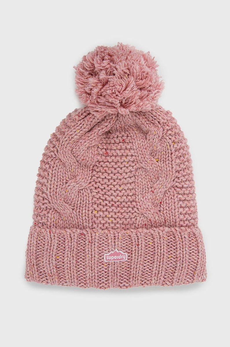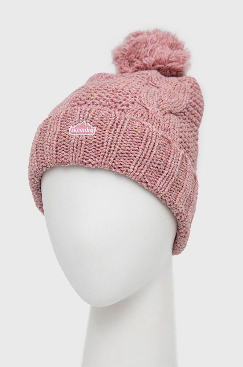 Шапка з домішкою вовни Superdry колір рожевий з товстого трикотажу (2661131) Один розмір