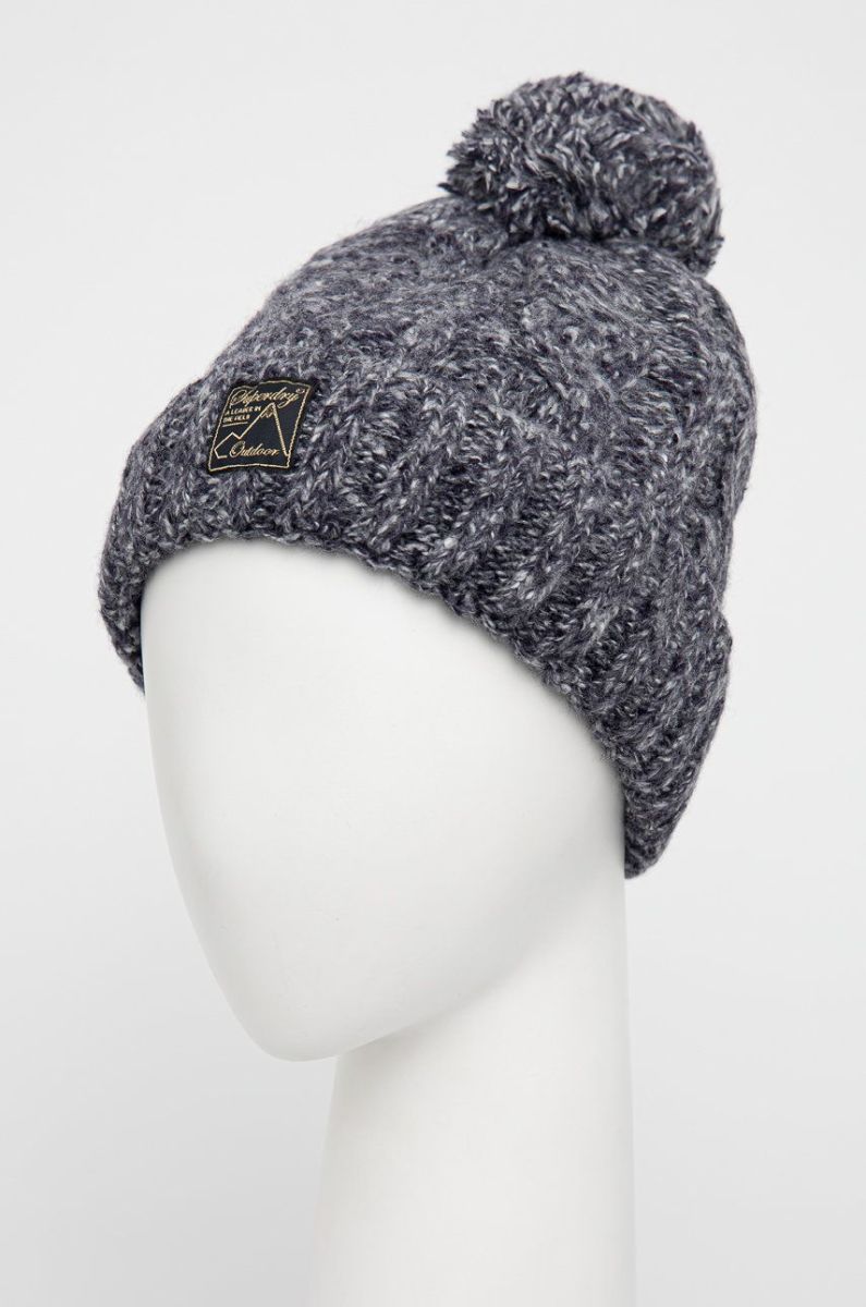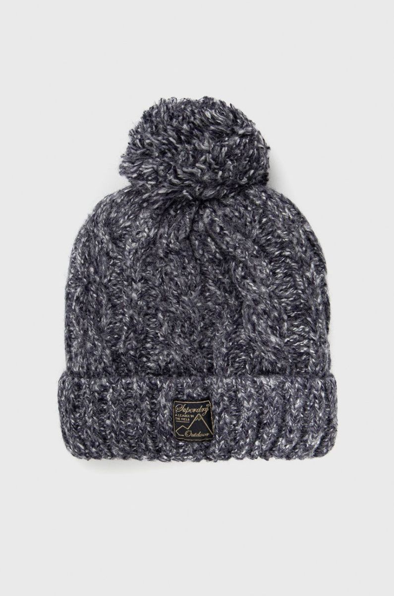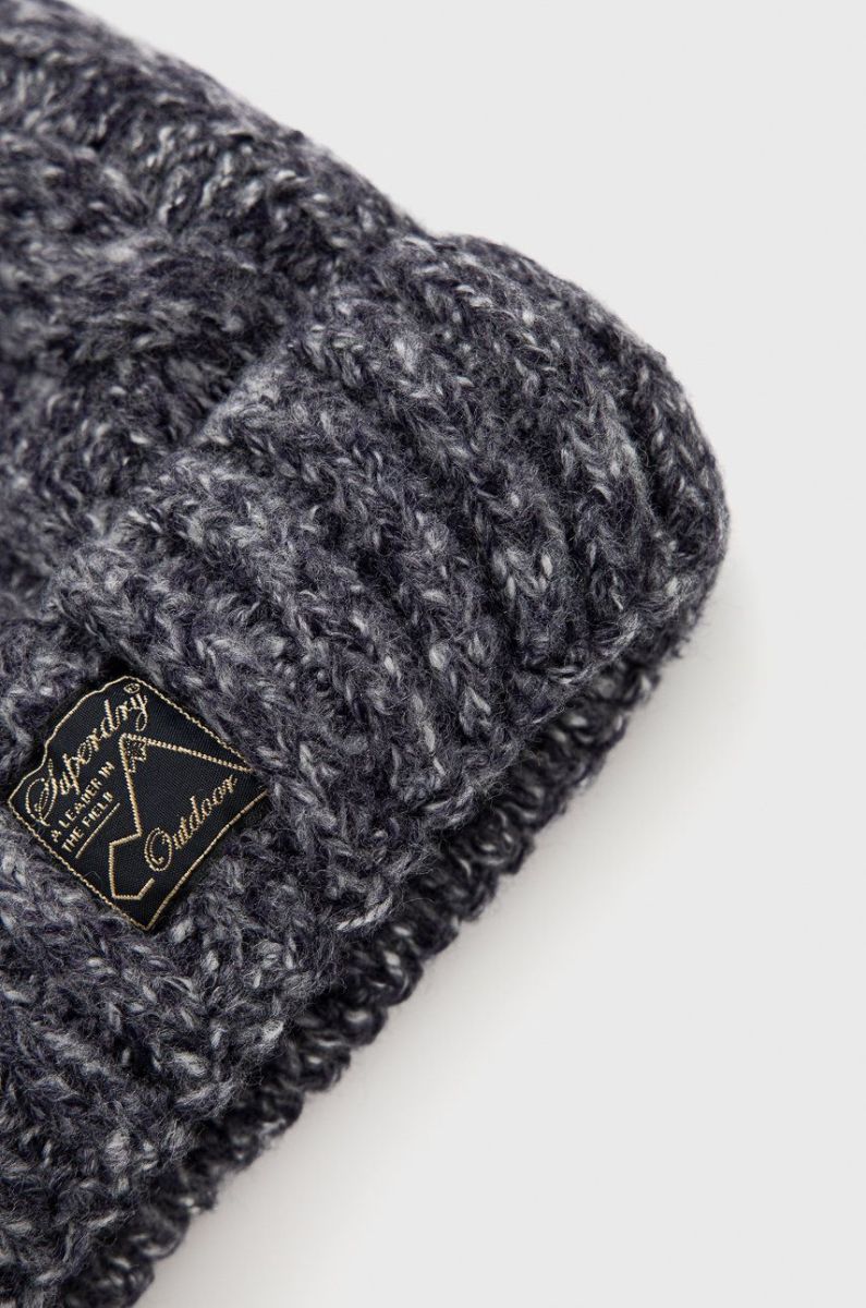 Шапка з домішкою вовни Superdry колір синій з товстого трикотажу (2122122) Один розмір