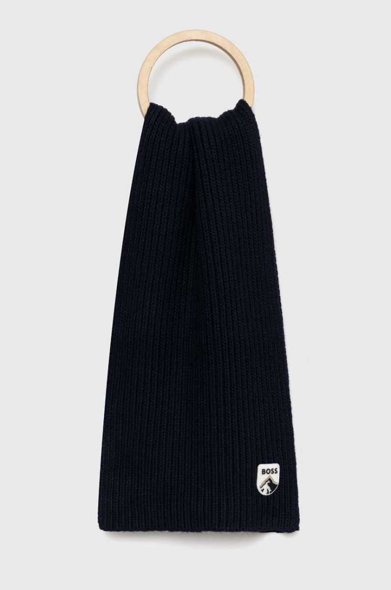 Шарф з домішкою вовни BOSS колір синій з аплікацією