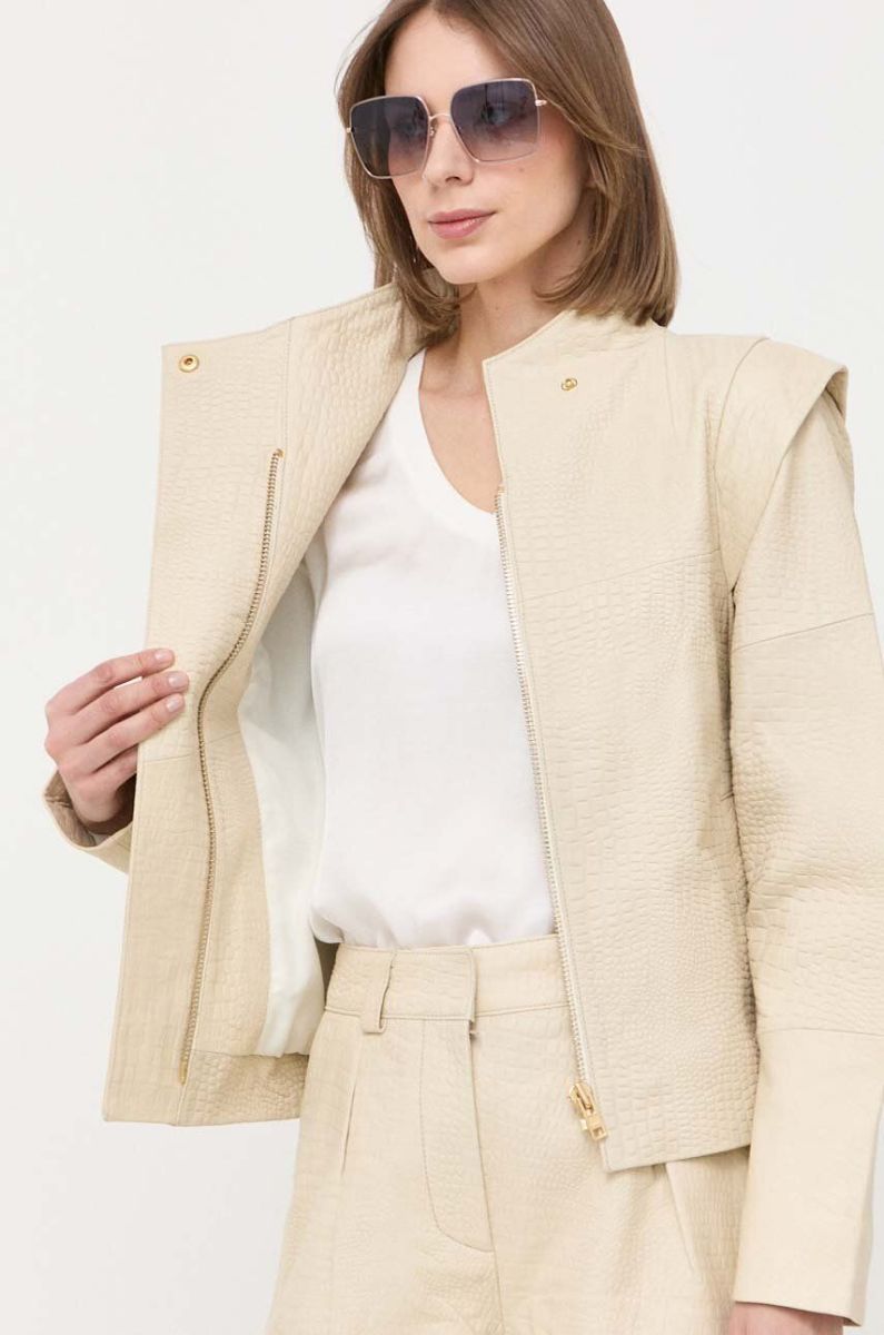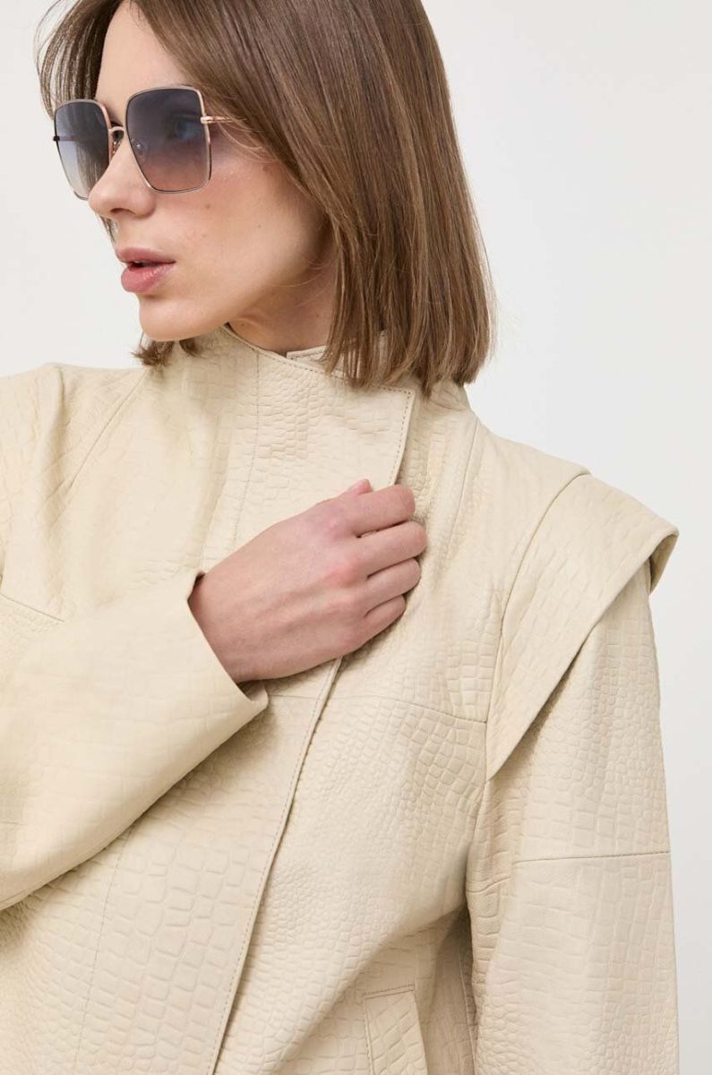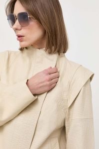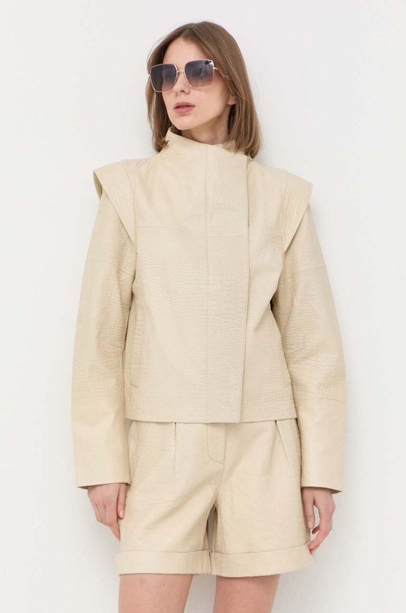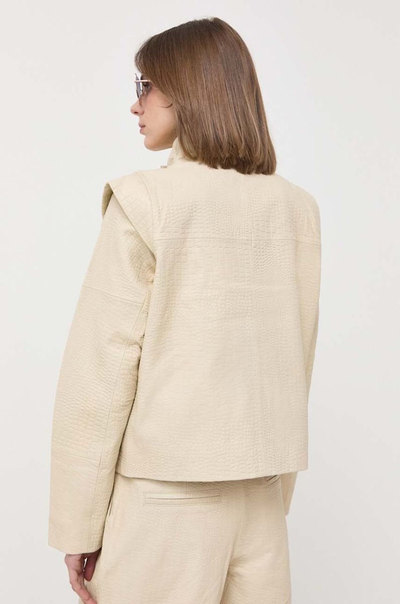 Шкіряна куртка Notes du Nord жіноча колір бежевий перехідна