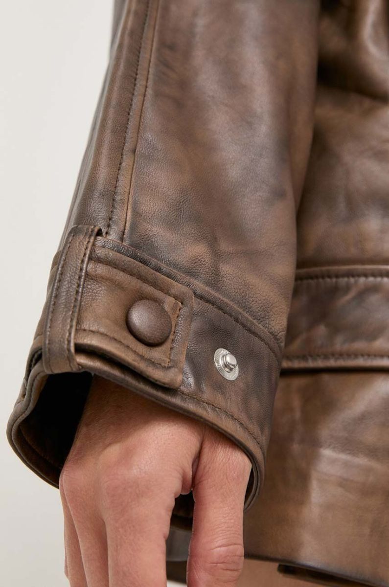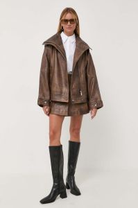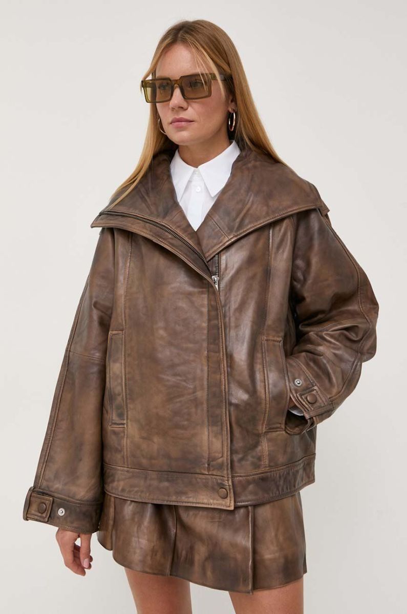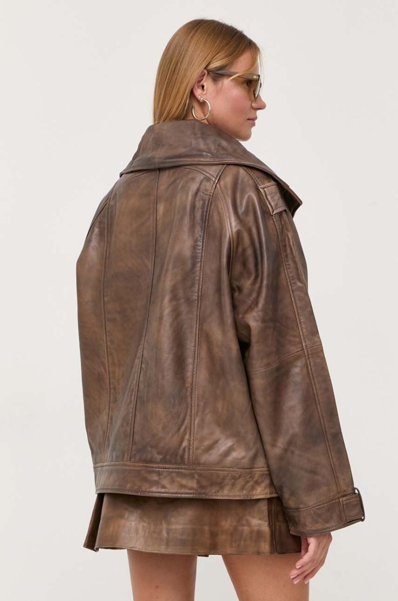 Шкіряна куртка Remain жіноча колір коричневий перехідна oversize