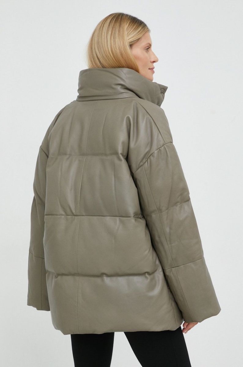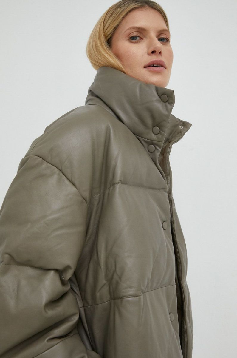 Шкіряна куртка Samsoe Samsoe жіноча колір сірий зимова oversize