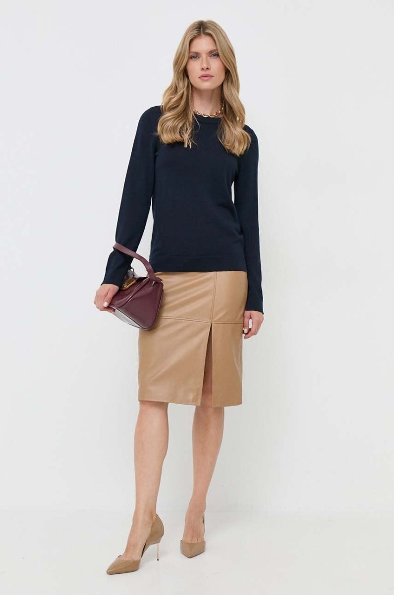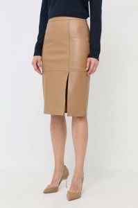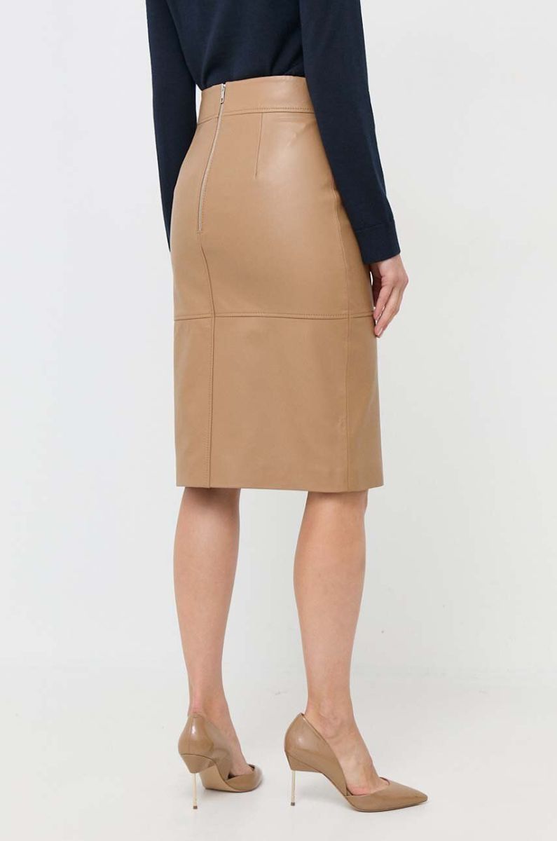 Шкіряна спідниця BOSS колір бежевий mini пряма (3435945)