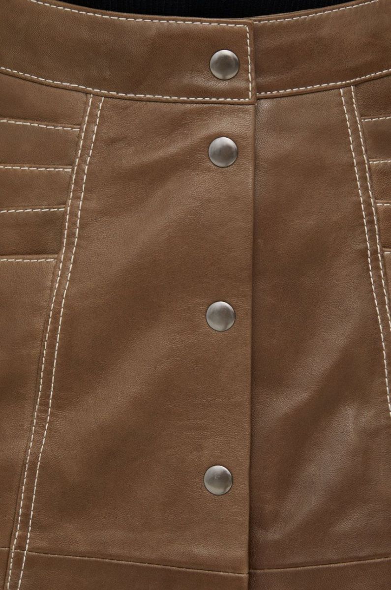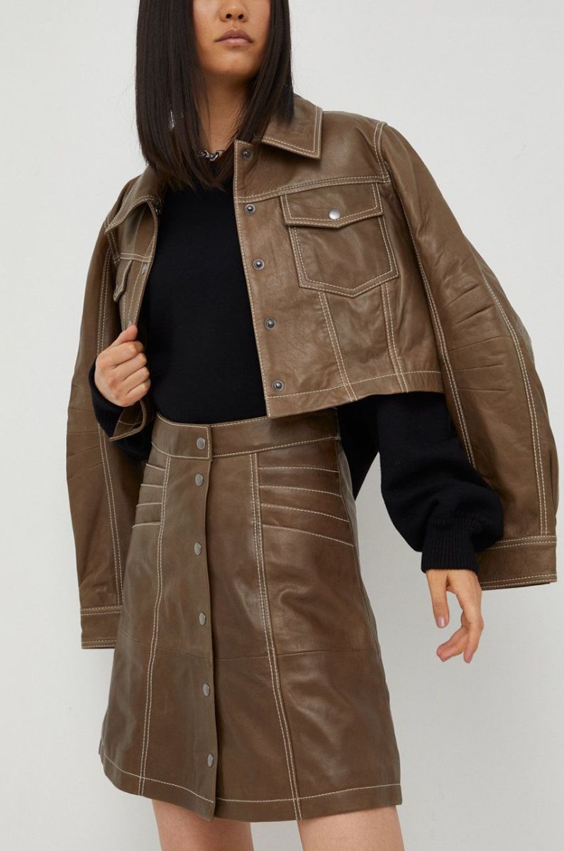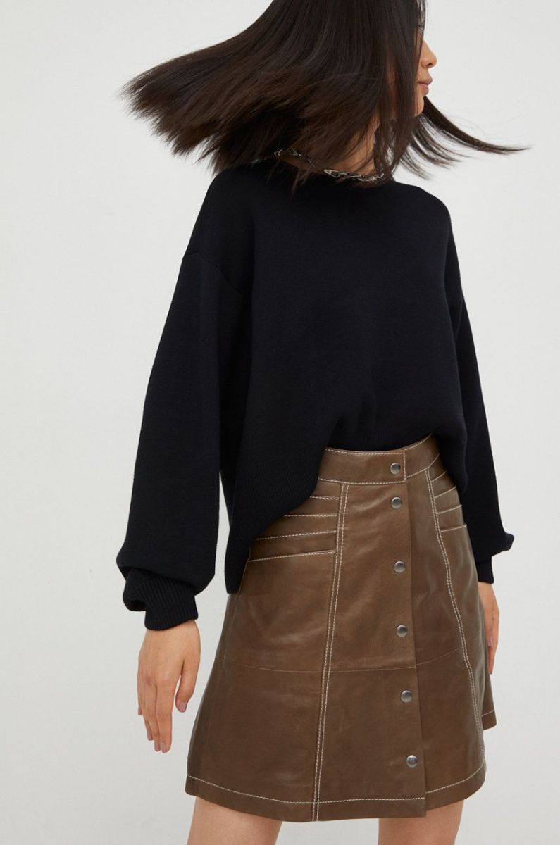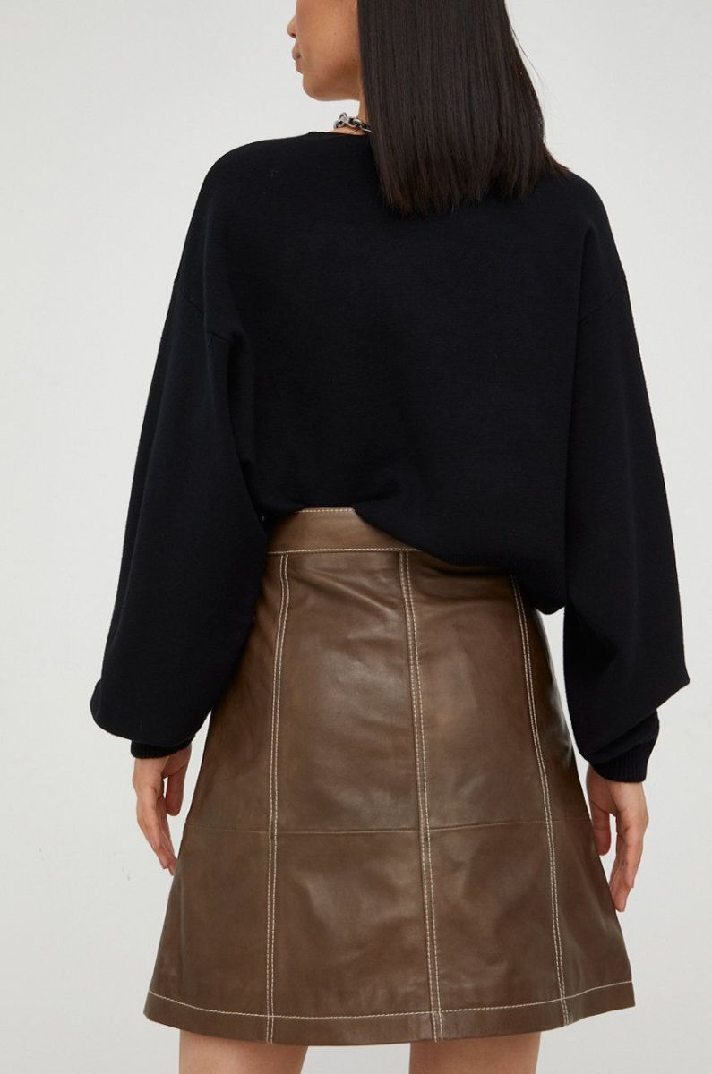 Шкіряна спідниця Gestuz колір коричневий mini розкльошена