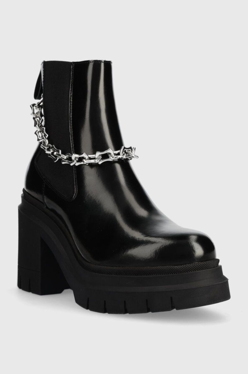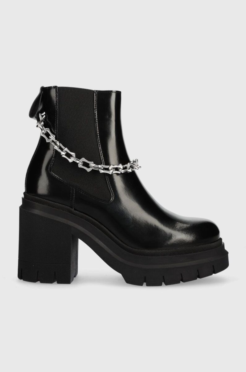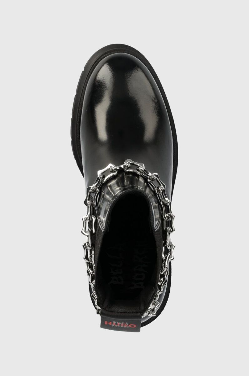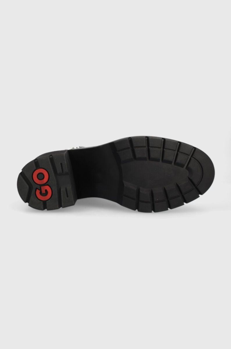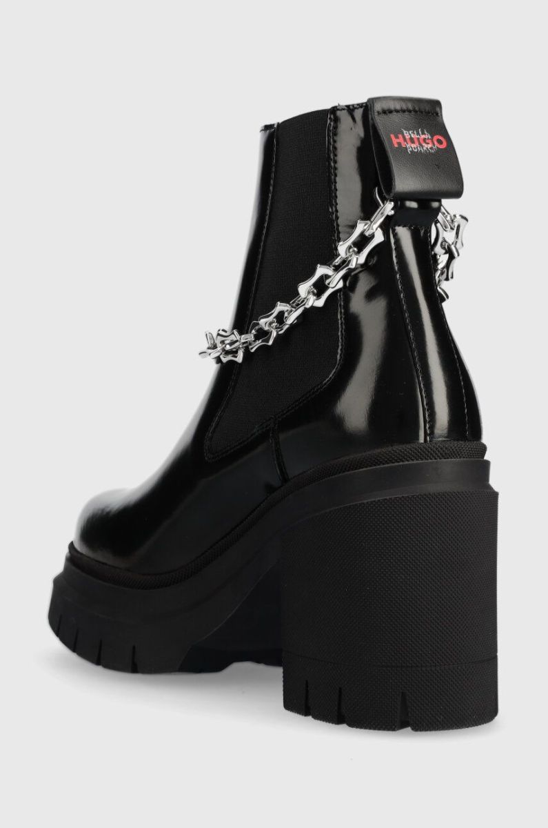 Шкіряні черевики HUGO Kris жіночі колір чорний каблук блок 50509836