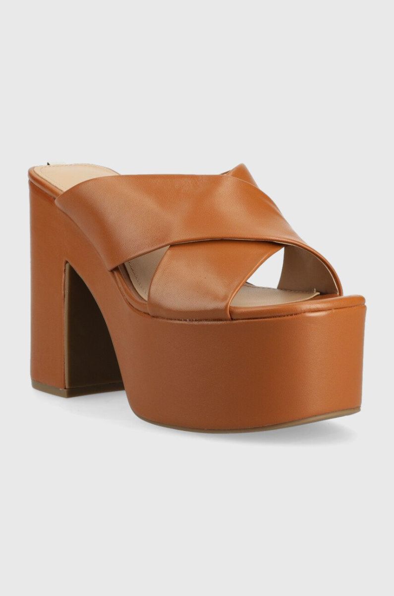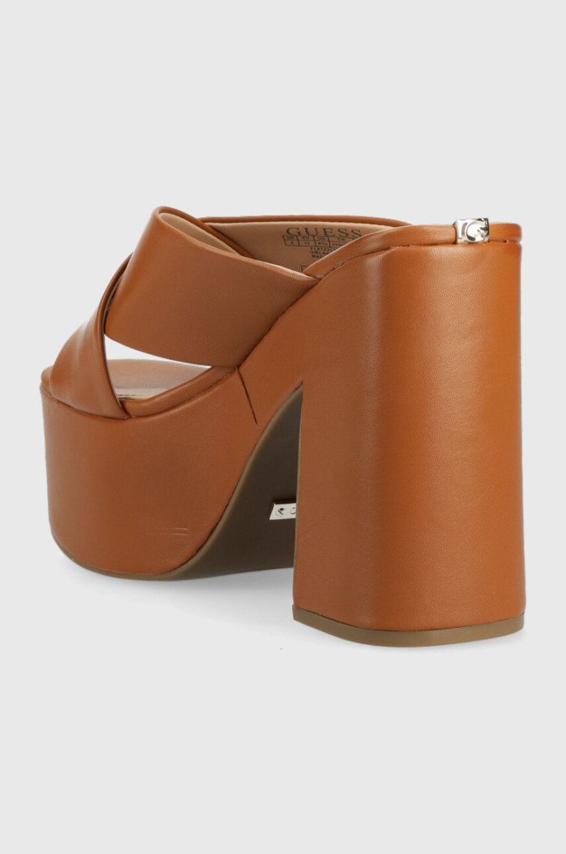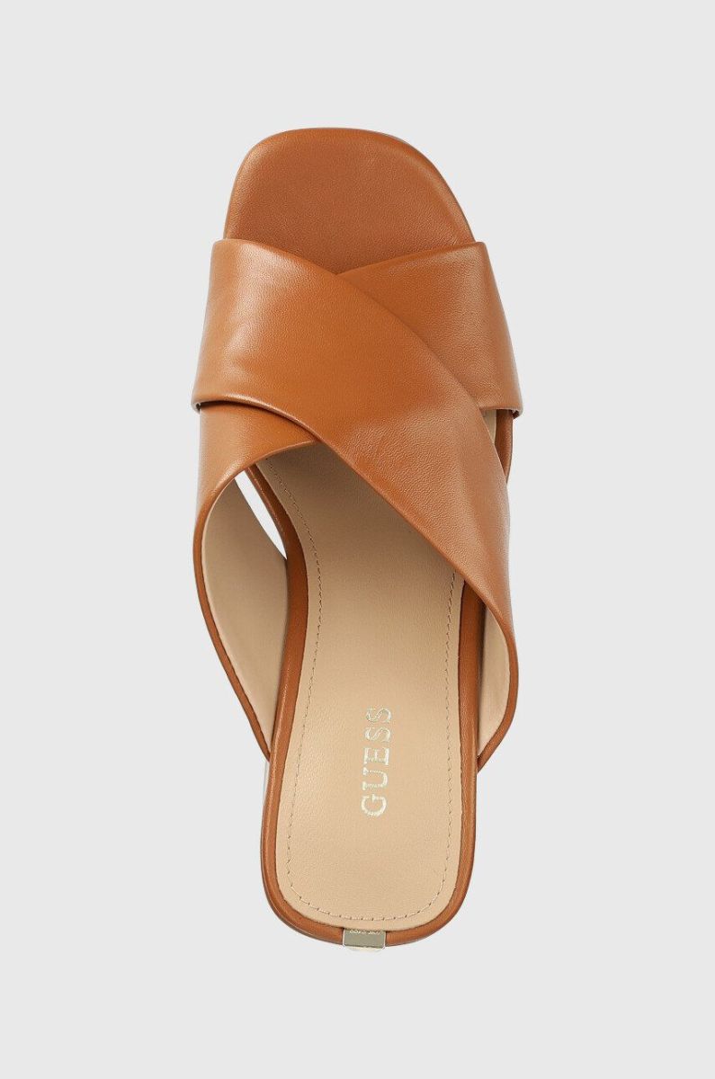 Шкіряні шльопанці Guess LANTZ2 жіночі колір коричневий каблук блок FL6TZ2 LEA03