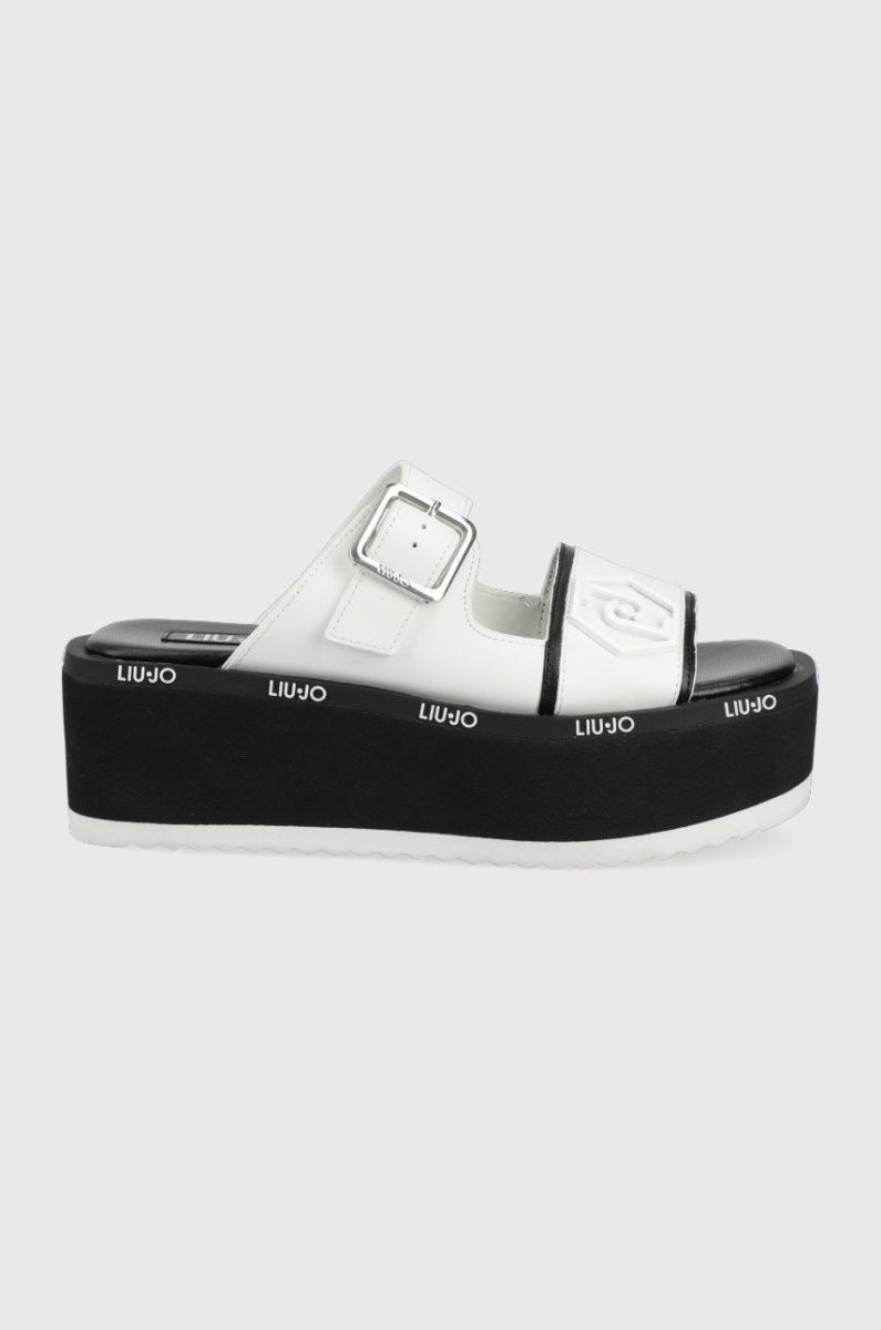Шкіряні шльопанці Liu Jo Aba 08 жіночі колір білий на платформі