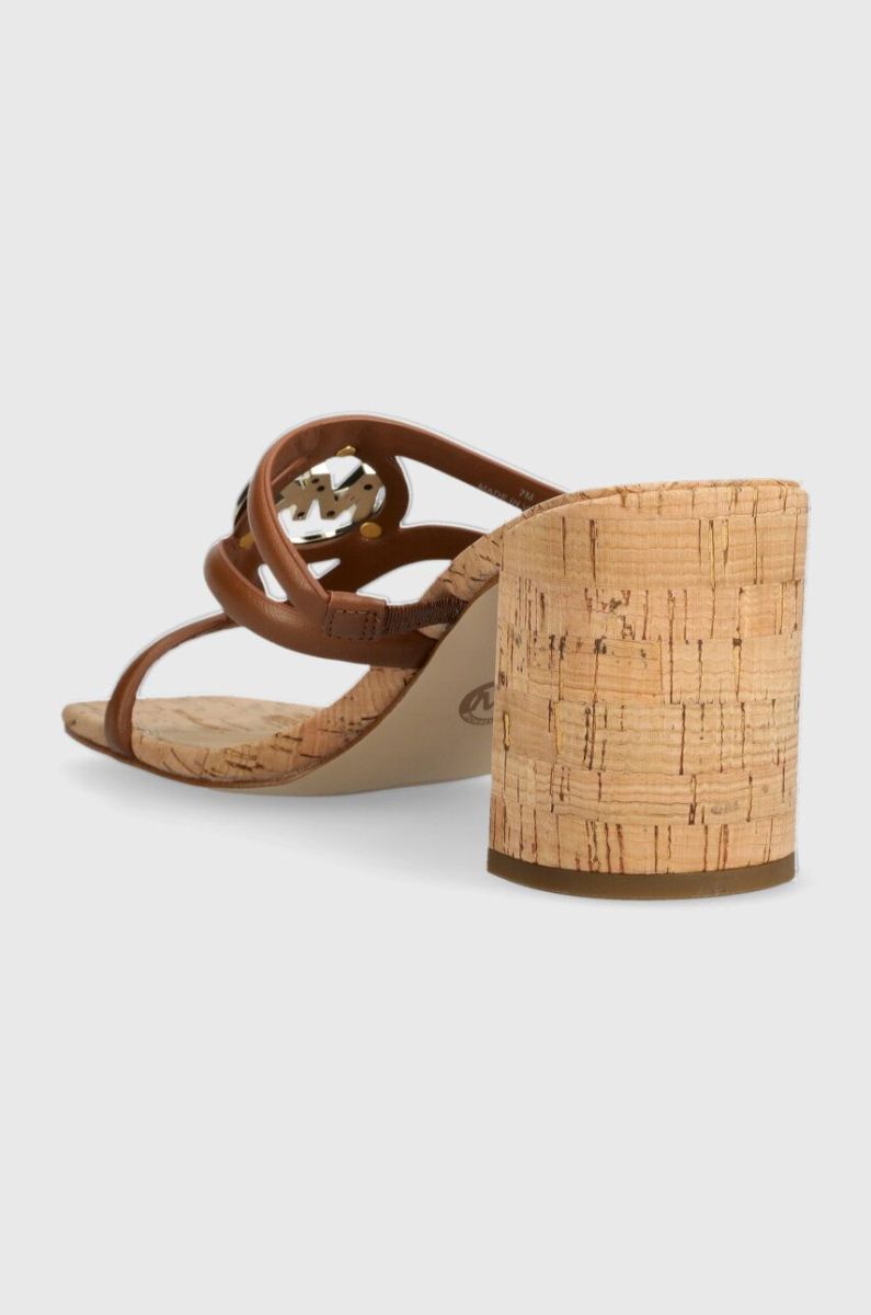 Шкіряні шльопанці MICHAEL Michael Kors Hampton жіночі колір коричневий каблук блок 40S3HMMS1L