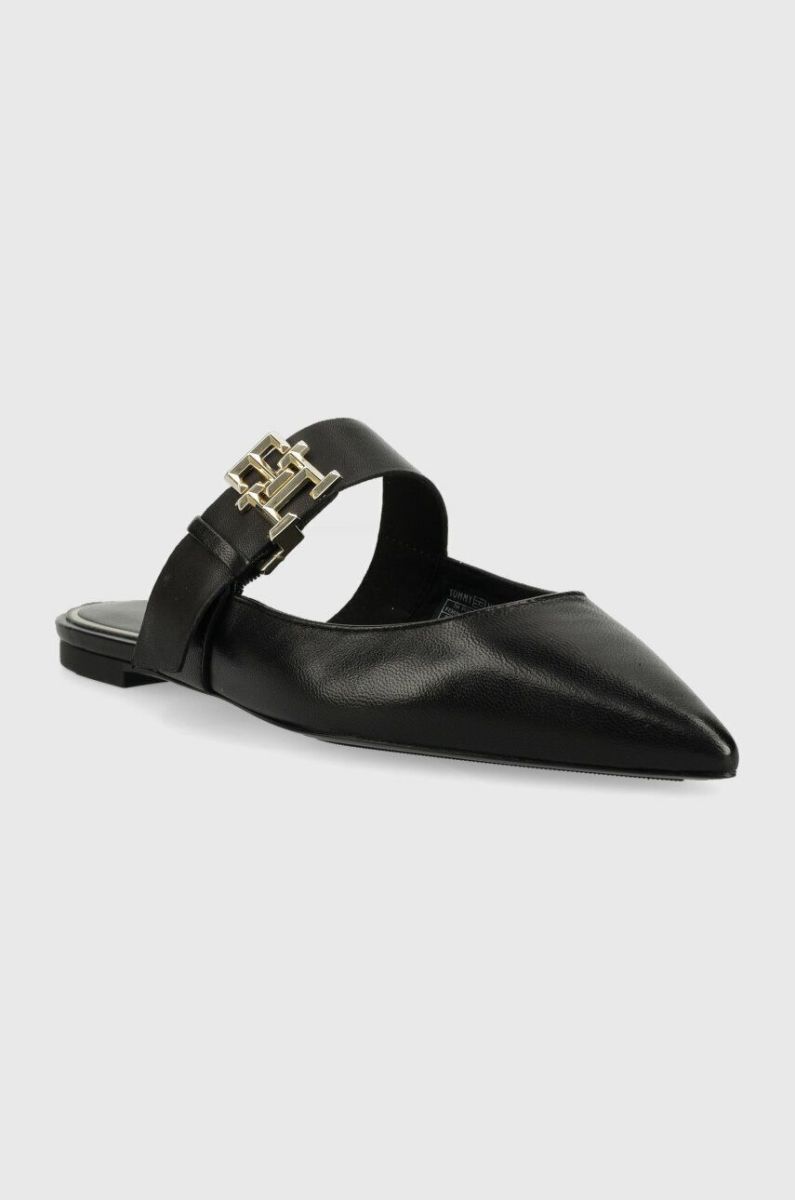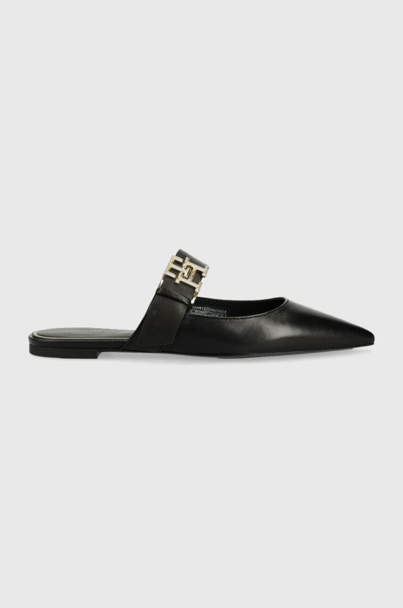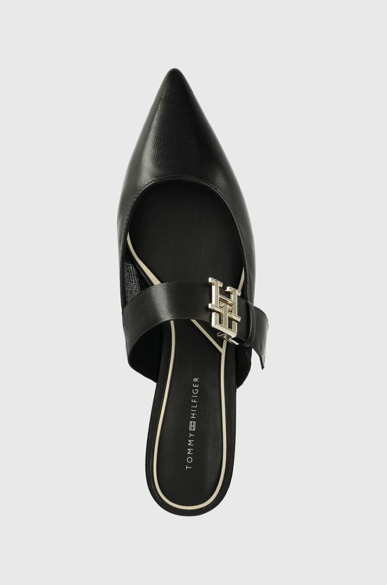 Шкіряні шльопанці Tommy Hilfiger TH POINTY FEMININE MULE жіночі колір чорний FW0FW06997