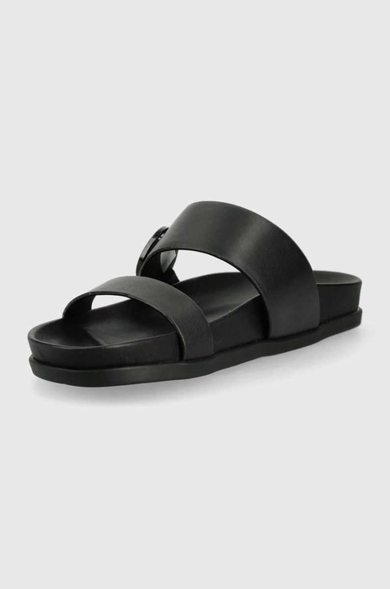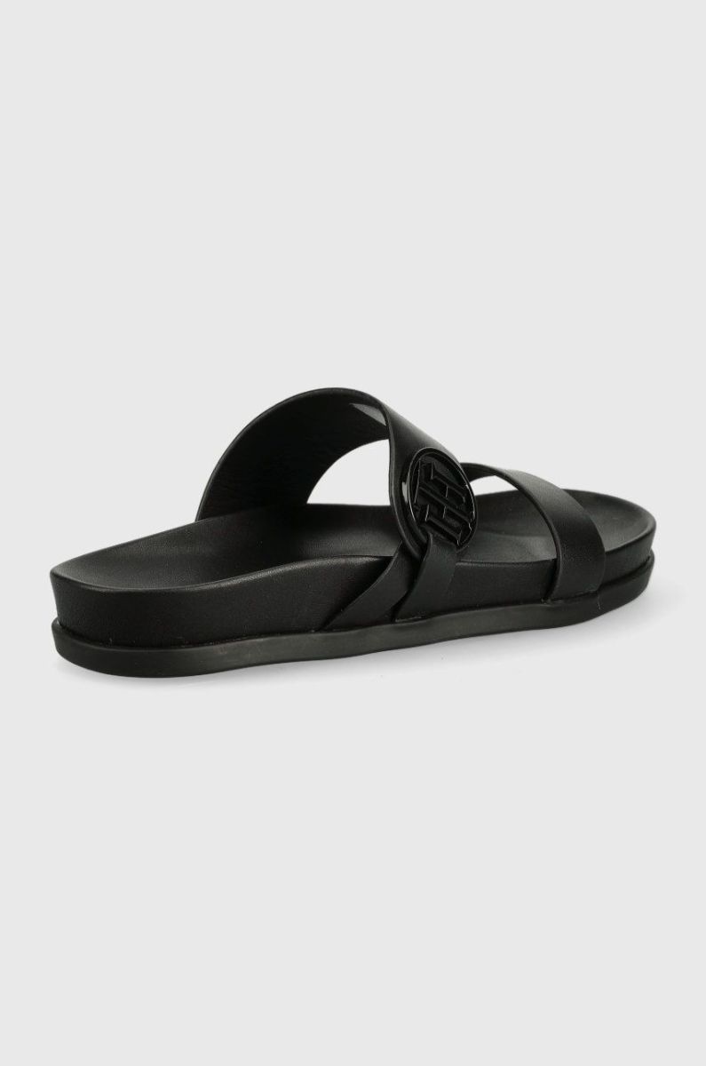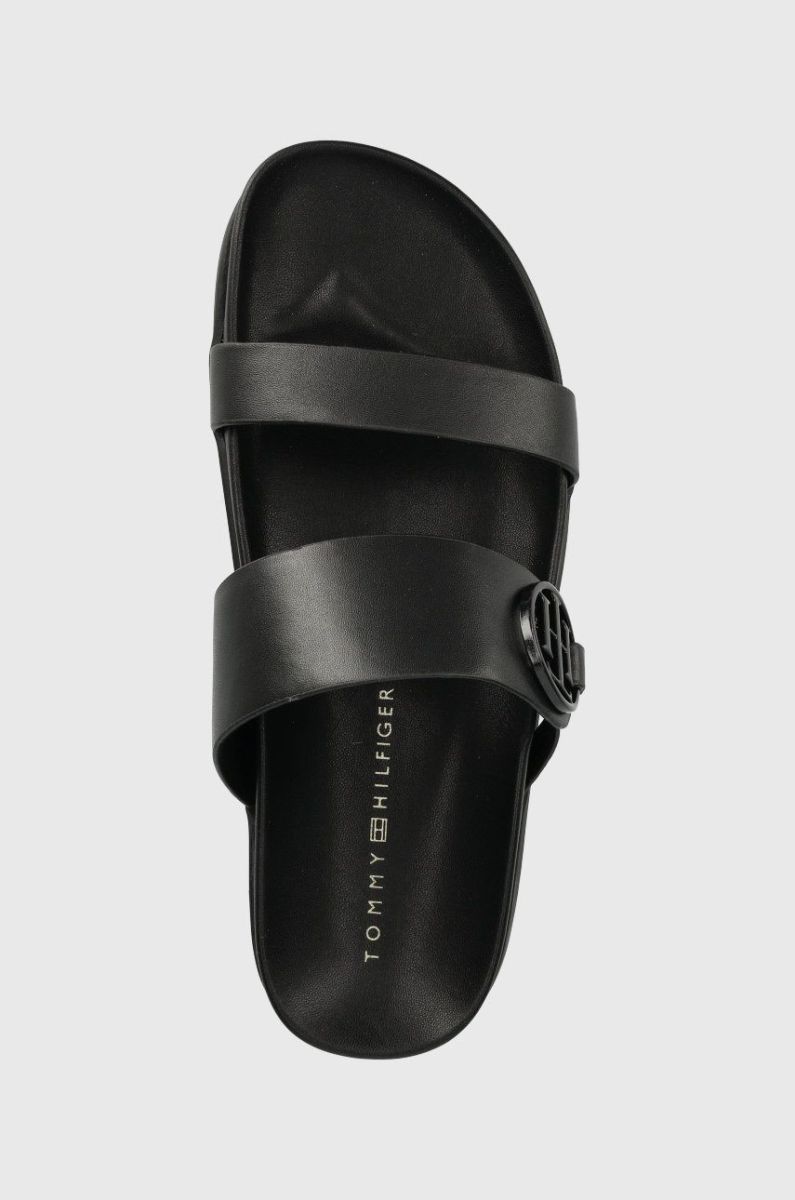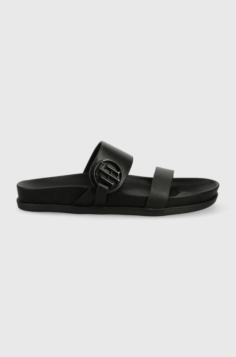 Шкіряні шльопанці Tommy Hilfiger жіночі колір чорний