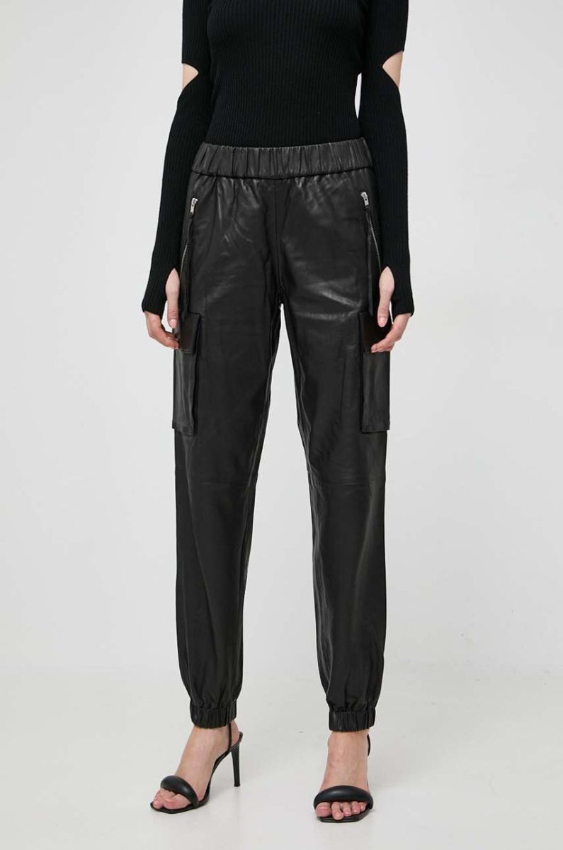 Шкіряні штани Notes du Nord жіночі колір чорний висока посадка