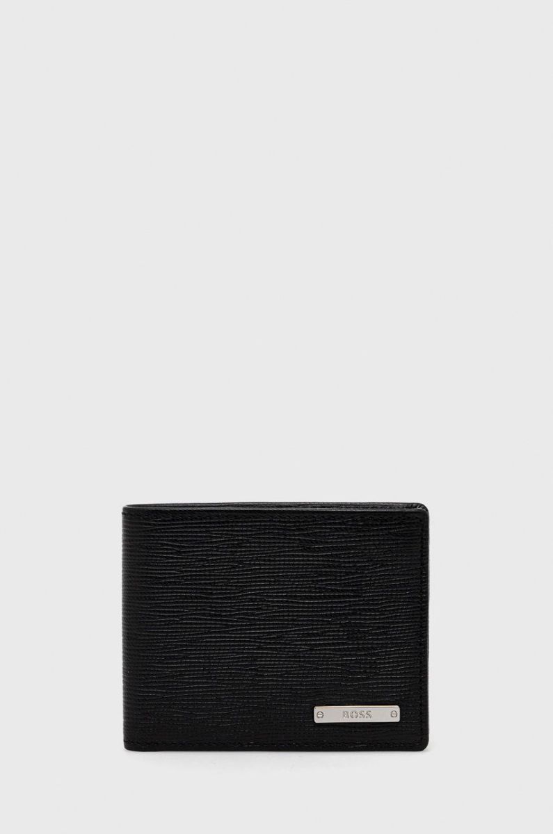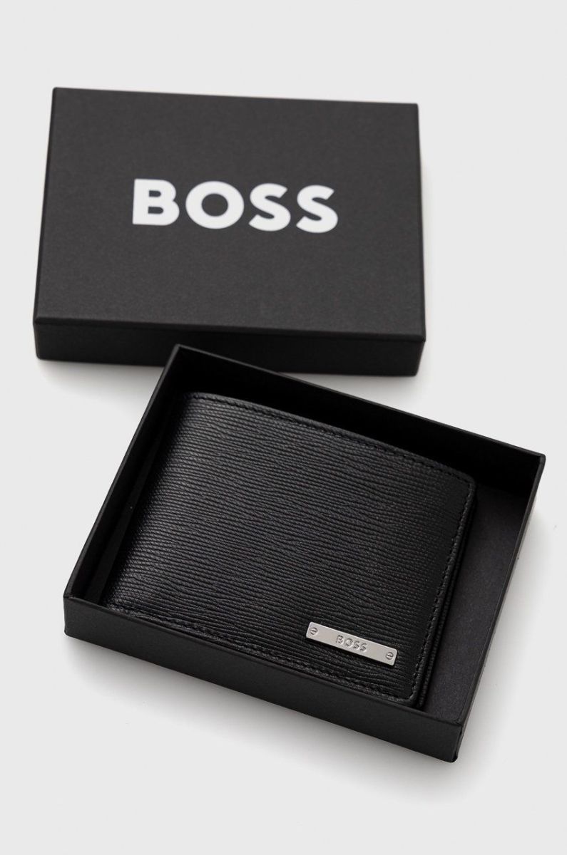 Шкіряний гаманець BOSS чоловічий колір чорний (2634945) Один розмір