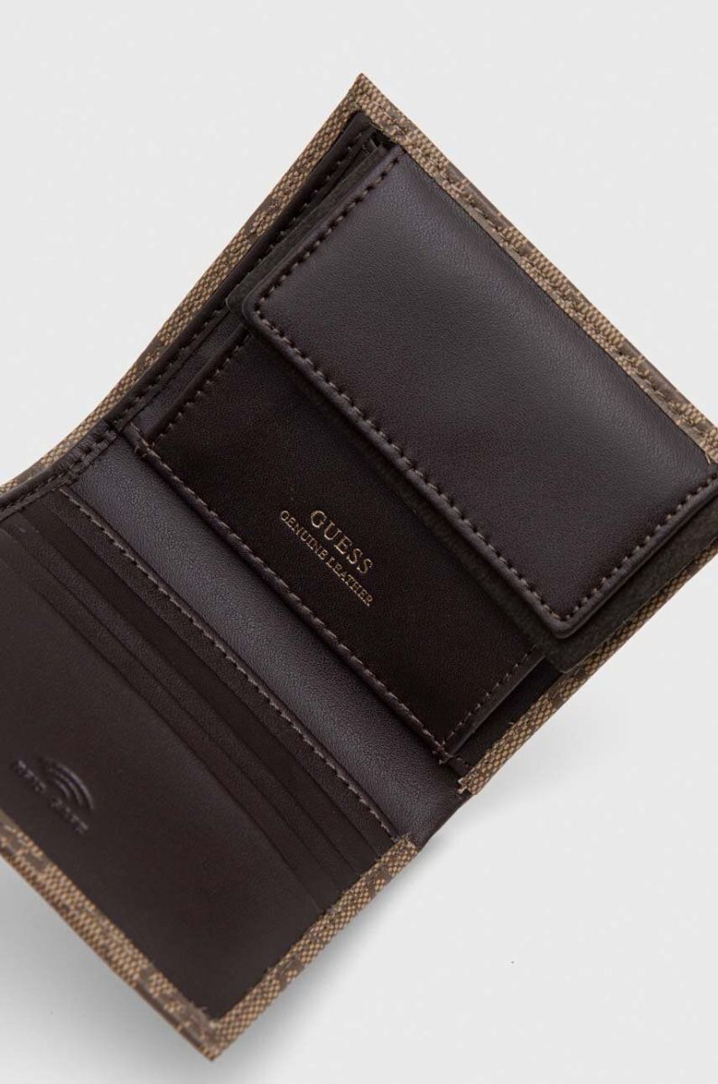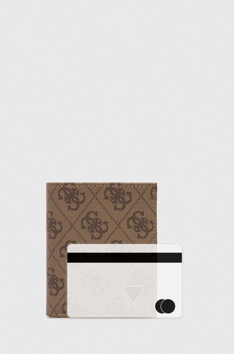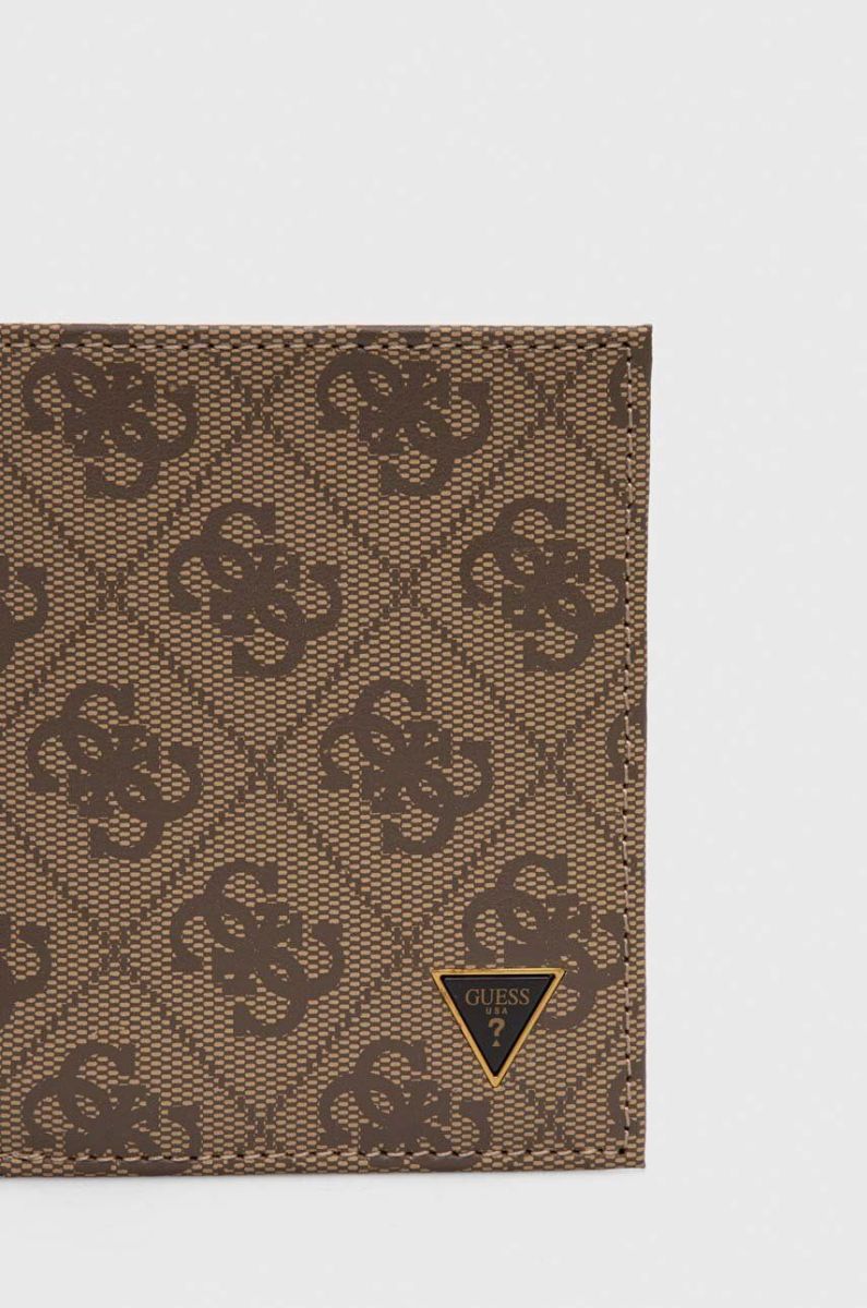 Шкіряний гаманець Guess чоловічий колір бежевий (3618357) Один розмір