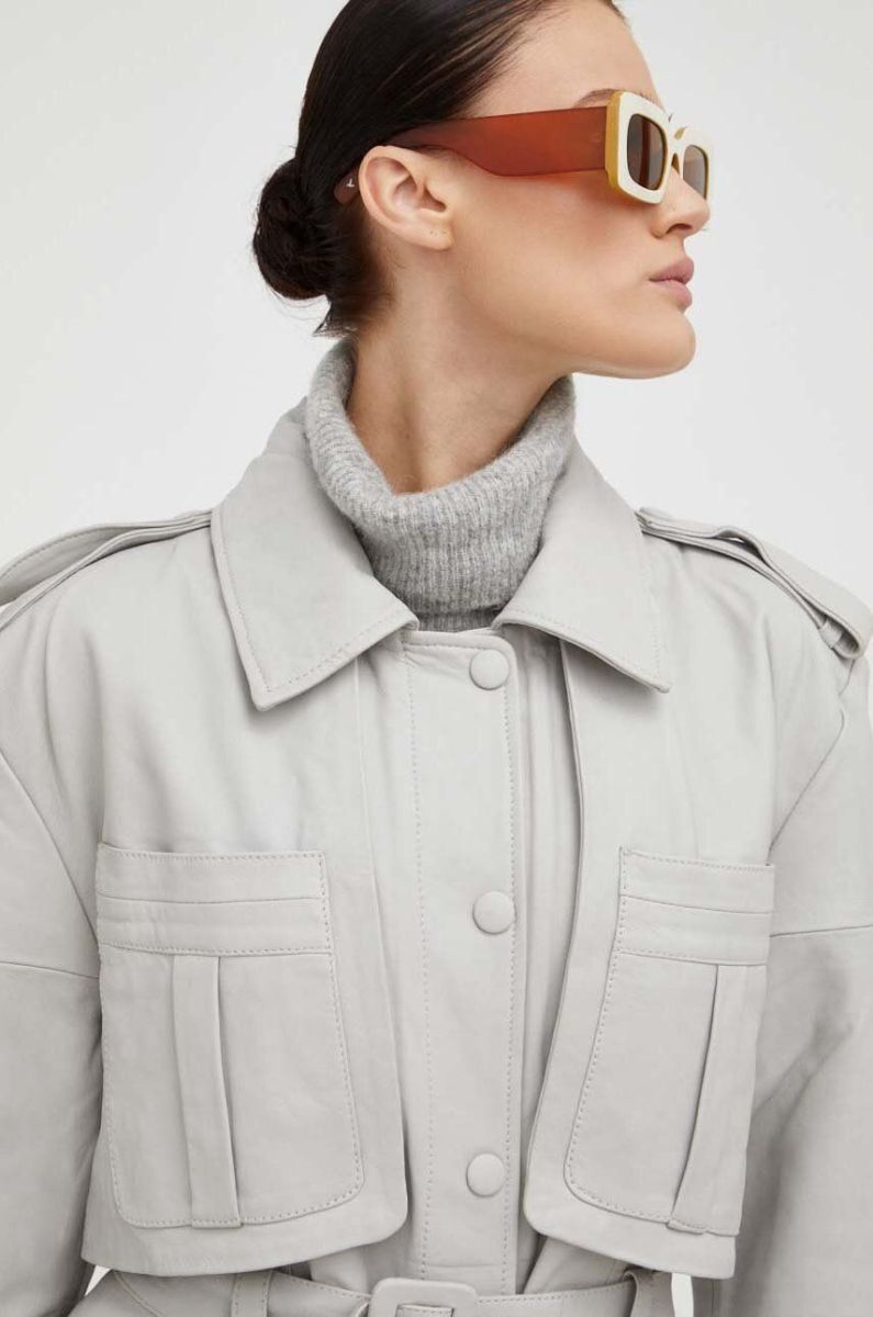Шкіряний плащ Gestuz жіночий колір сірий перехідний