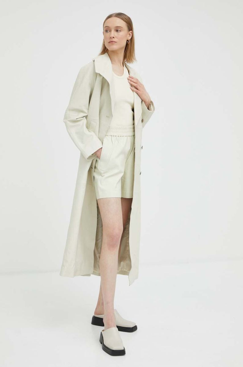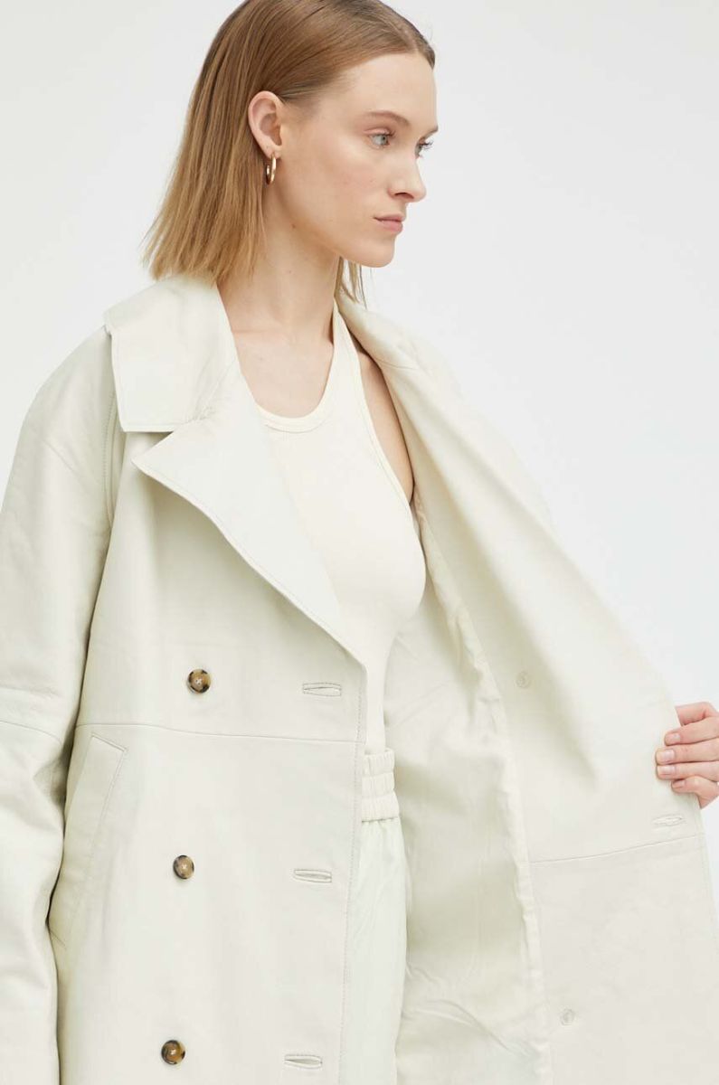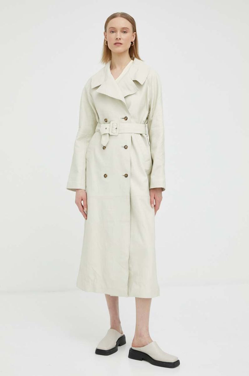 Шкіряний плащ Herskind Lunar жіночий колір бежевий перехідний oversize