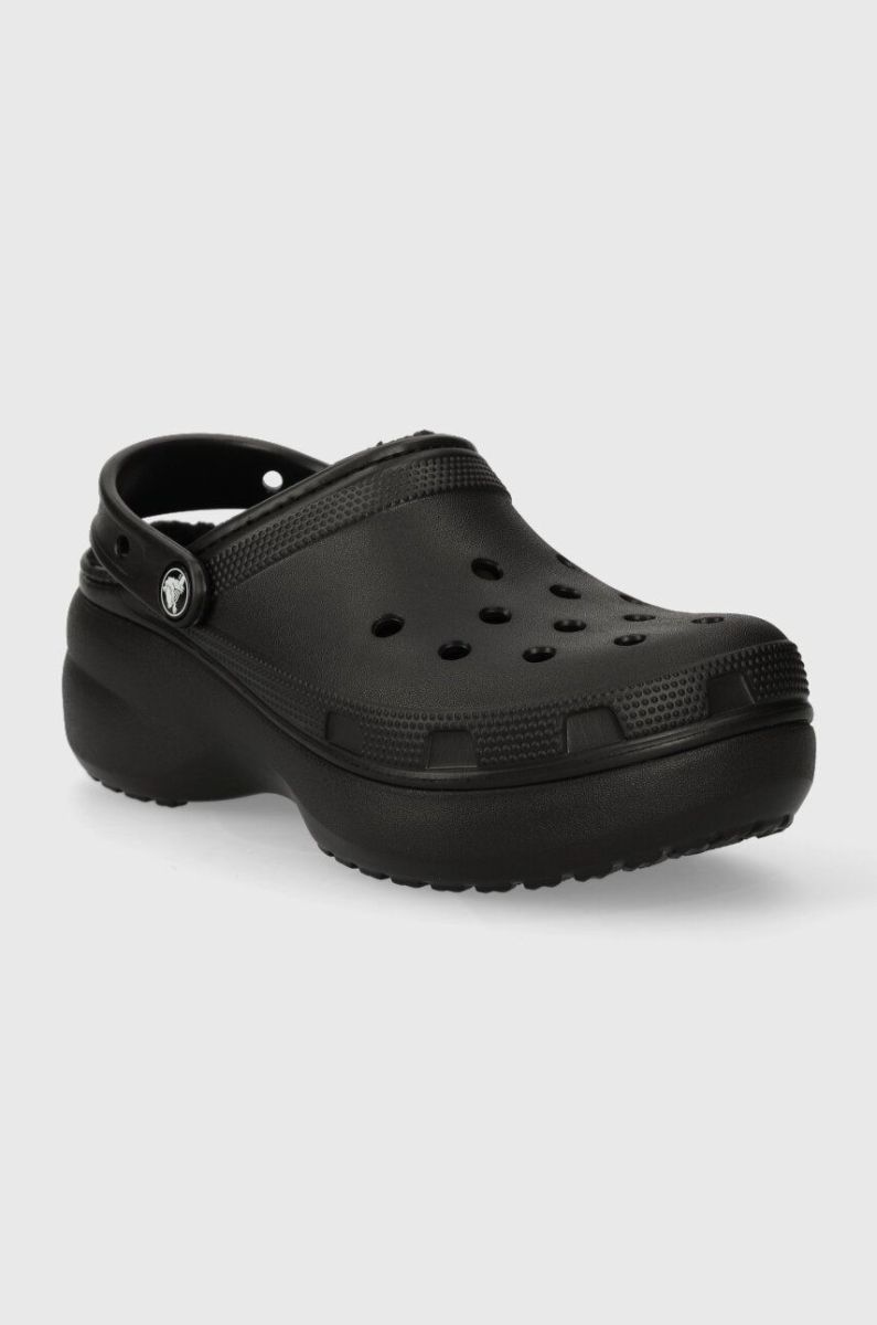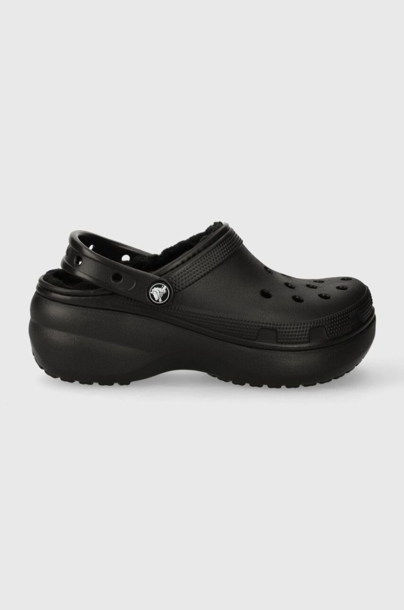 Шльопанці Crocs Classic Platform Lined Clog жіночі колір чорний на платформі 207938