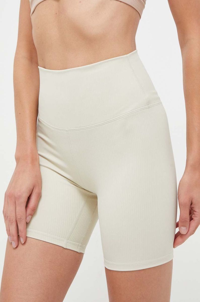 Шорти для йоги Joy in me Ribbed колір бежевий однотонні висока посадка