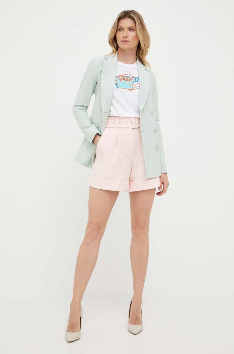 Шорти Guess жіночі колір рожевий однотонні висока посадка (3194520)
